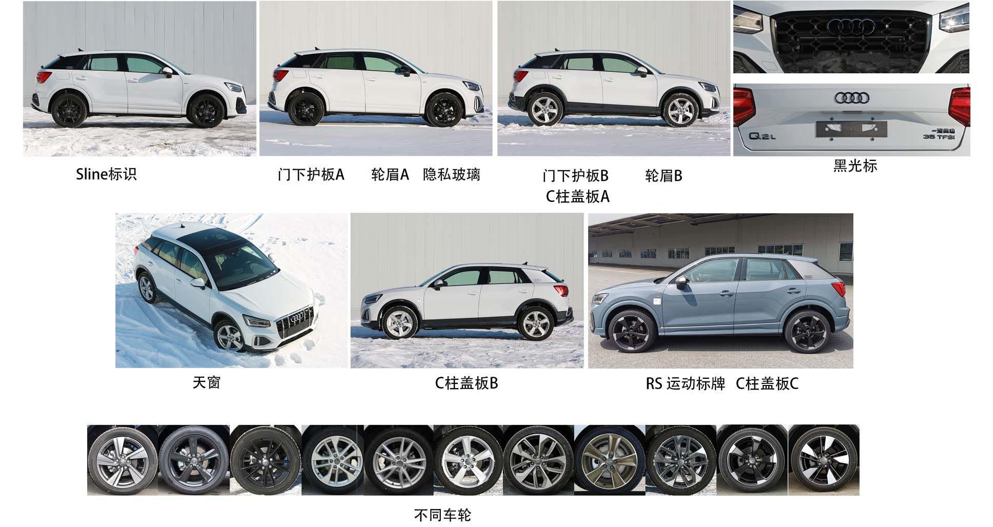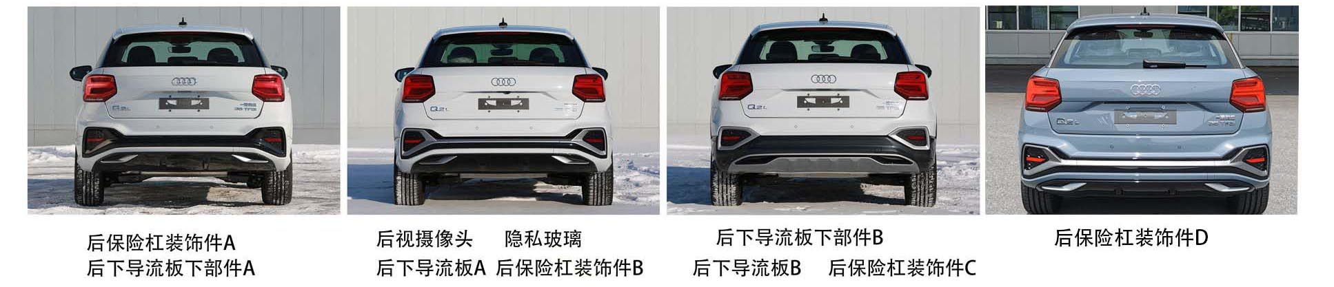 同样地来到车尾,新奥迪Q2L沿用现款车型独特的方形尾灯造型,以提高整车的辨识度;下包围也提供了四款不同样式的后包围可选,轮毂方面更是多达十余款样式可选。