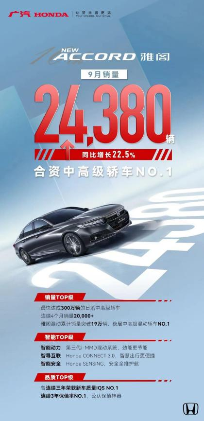雅阁9月销量24,380辆