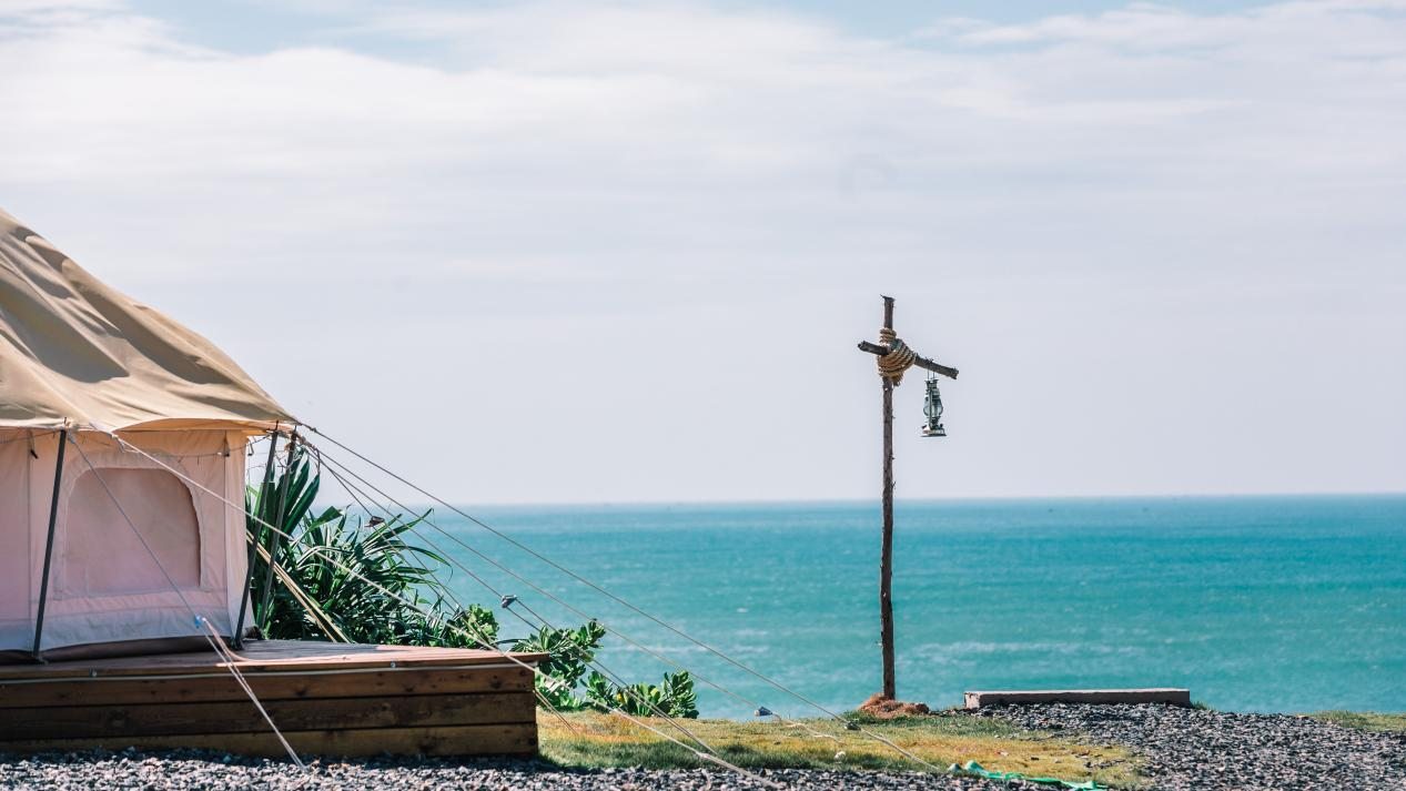 穿过青翠掩映、秋风送爽的田间道路,驶向营地点,原本熟睡的孩子不知何时已经趴在窗边,天真的眼睛追寻着海平线的影子。“到了!”乳白色的精致帐篷之间小伙伴们正在嬉戏,与碧水蓝天,构成一幅鲜活美好的画卷。