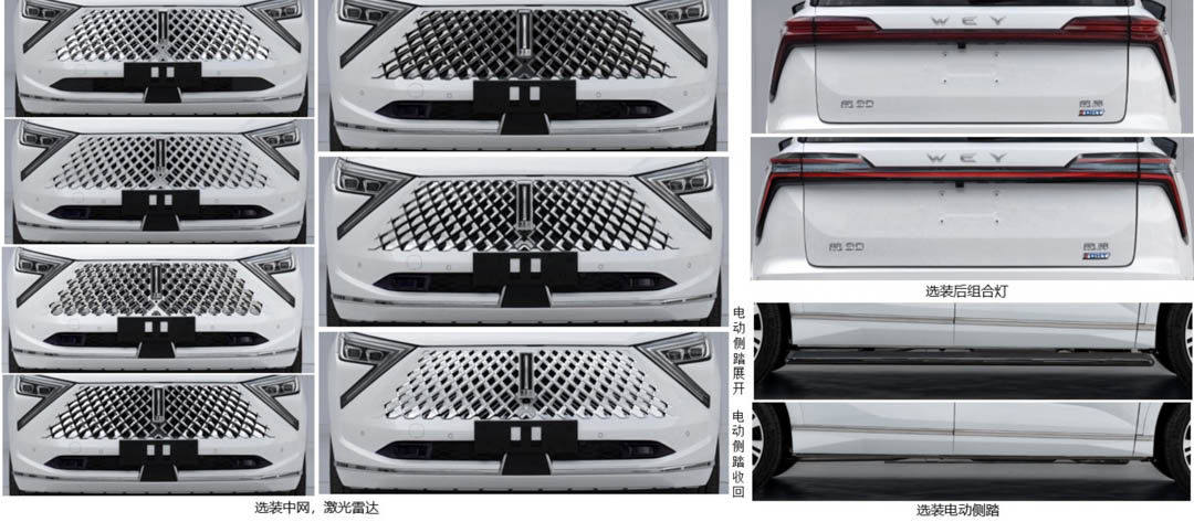从网站曝光的申报图来看,魏80采用了家族最新设计理念,远远看去更为硬朗。前脸采用无边界进气格栅设计,与玛奇朵、拿铁等车型有着异曲同工之妙,搭配两侧羽翼式大灯组,给人一种富有攻击性的视觉效果。