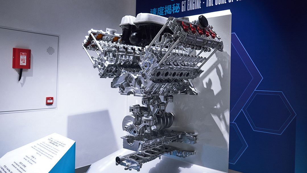 馆中展出的这台被拆散的V10发动机正是来自奥迪R8 LMS赛车,观众可以通过这个展品仔细观察高性能发动机的内部构造。