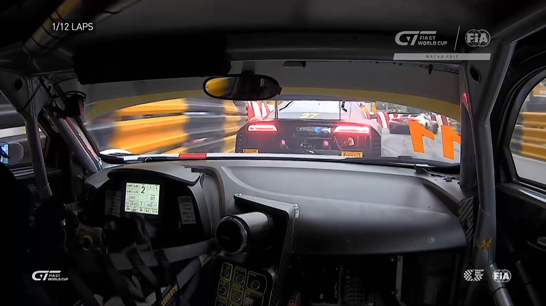 2017年澳门GT世界杯的“名场面”,这一画面在世界范围内广泛传播,成为澳门GT赛事的代表性画面之一(图片截取自官方赛事素材)。
