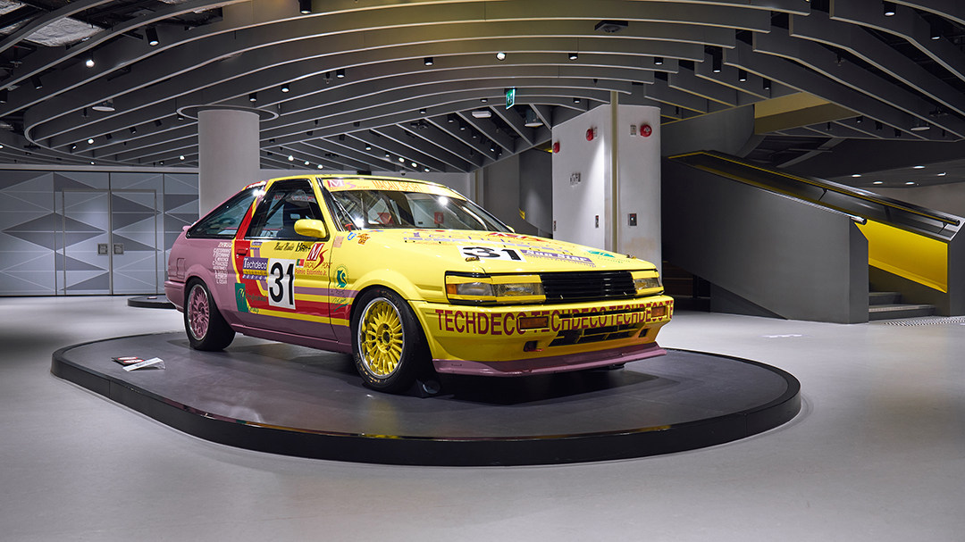 而在AE86的身旁展示着一台丰田Carina E赛车,这款纯正的JDM车型搭载2.2L发动机,曾在1997年由葡萄牙车手林慕士驾驶出战东望洋大赛并取得亚军。