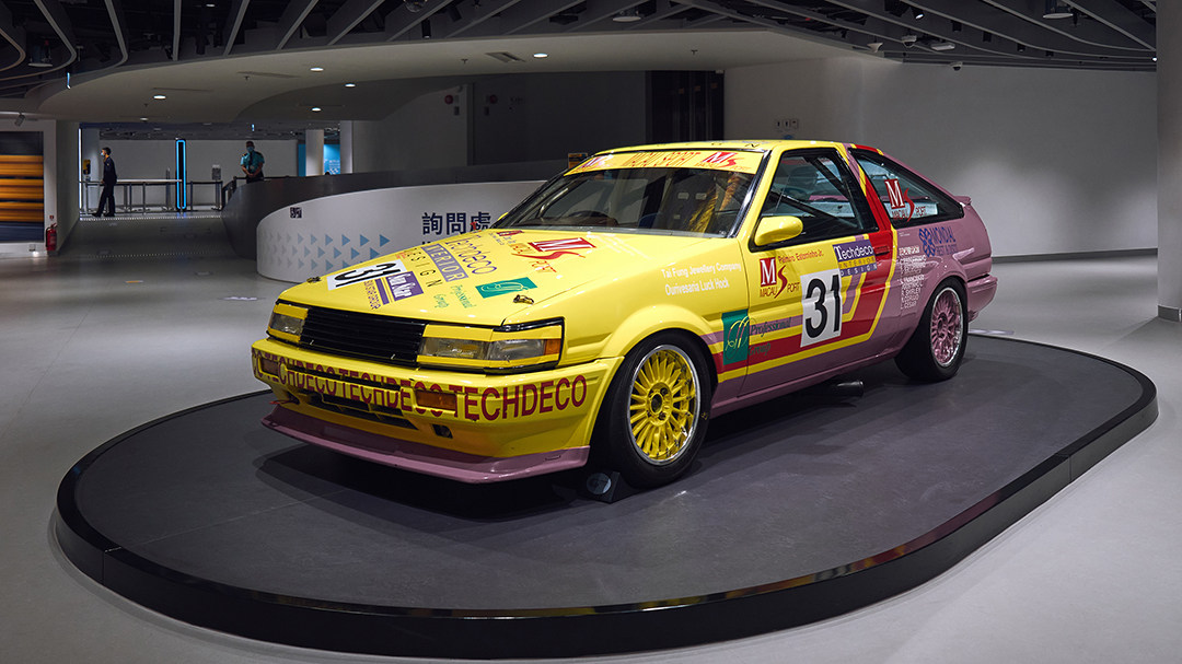 比如这台赛车,就是车迷们都非常熟悉的日系跑车经典作品——丰田AE86,这款于1983年首次推出,搭载1.6L发动机与前置后驱动力布局的A组赛车在1993年由葡萄牙车手马央驾驶出战东望洋大赛。