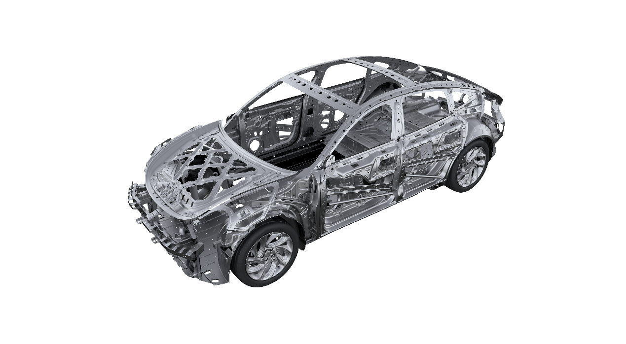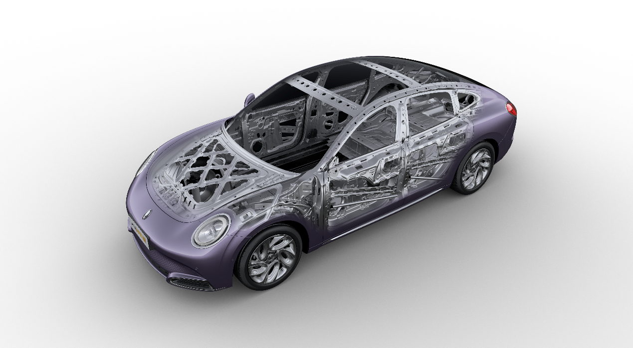 在此基础之上,欧拉闪电猫整车的高强度材料占比77.6%,其中高强钢占比30.6%,超高强钢占比29.4%,热成型钢占比17.6%,在热成型钢的结构应用上进行了仿真优化,分别应用在A/B柱,上下边梁、顶盖等关键区域。其中A/B柱应用了先进的2000MPa热成型钢,顶盖横梁采用1500Mpa的热成型钢,B柱内部增加了纤维增强复合材料,保证强度的同时,兼具优异的弯曲性能。以上设计均为了确保车身刚度,在碰撞发生后也能为车内乘客提供足够的生存空间,有效保护车辆结构和驾乘人员人身安全。