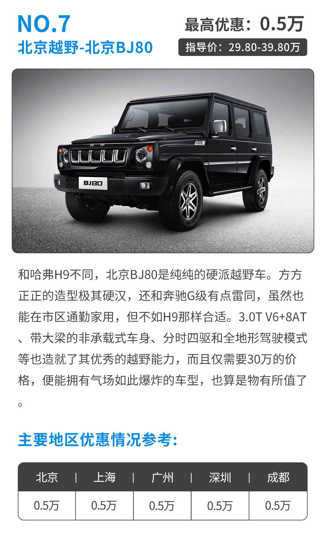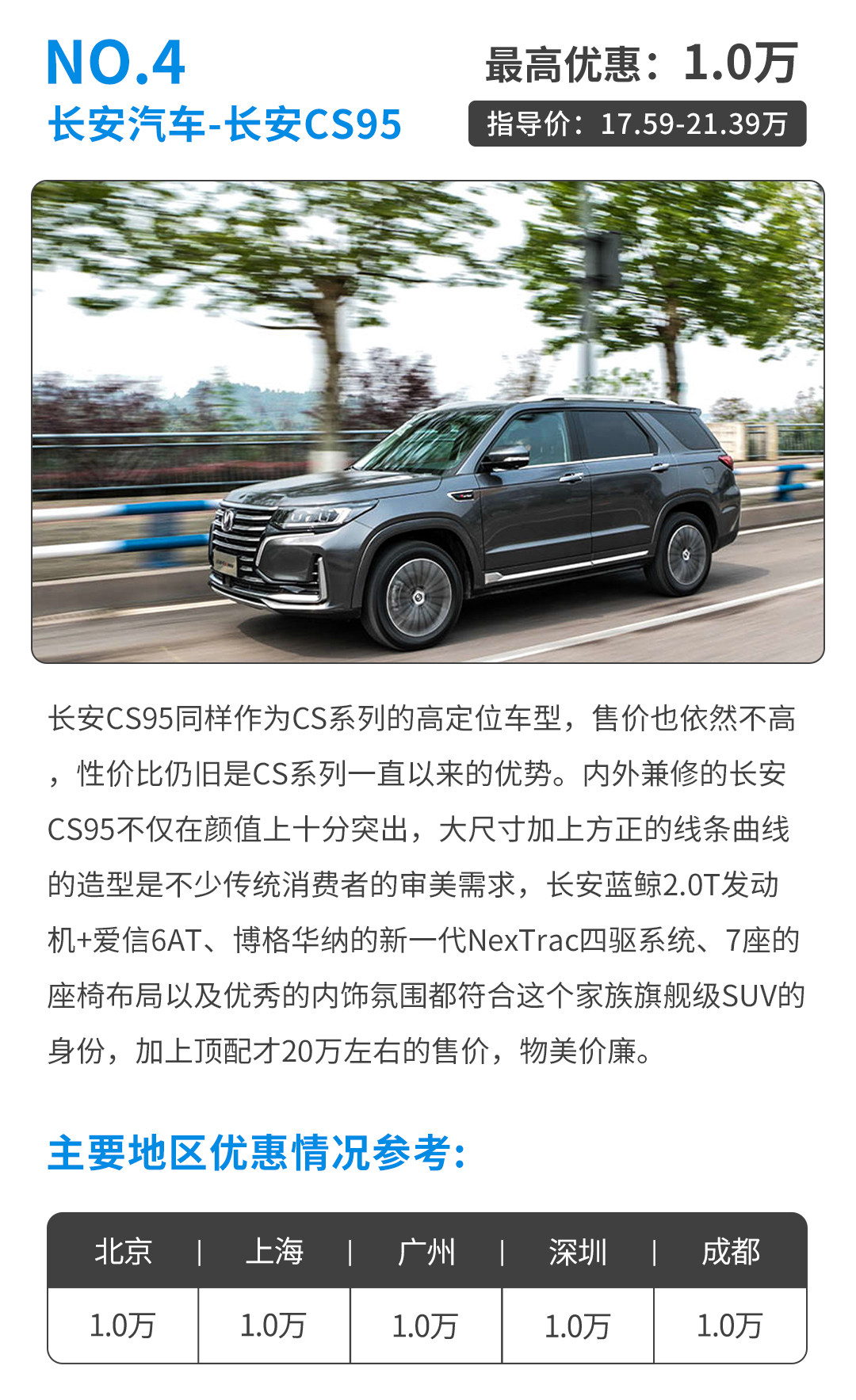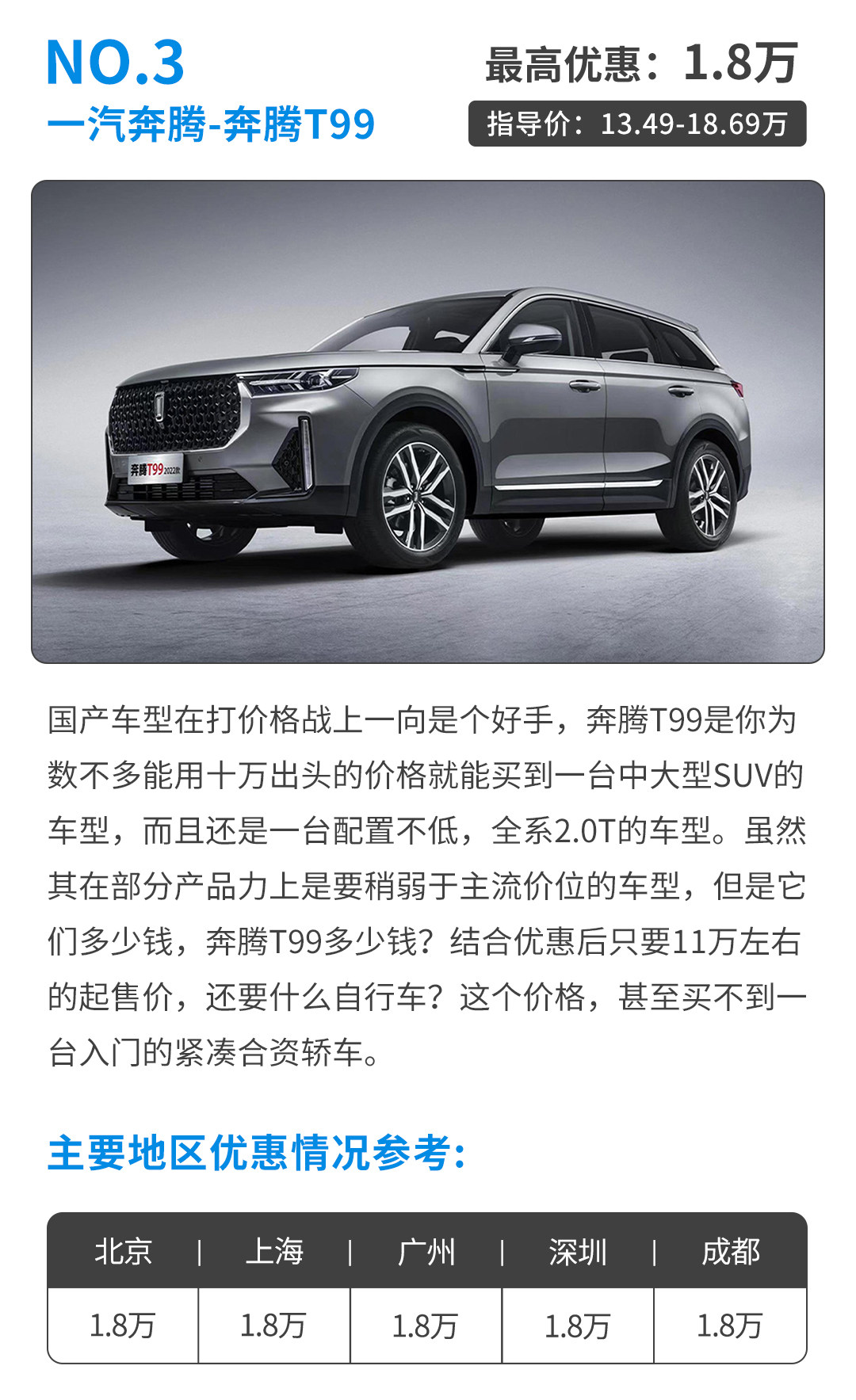 车型级别越高,自主品牌的性价就愈加明显,在中大型SUV这个定位中,拥有一台入门级SUV价格的车型也只有自主品牌能做到这一点了。如果屏幕前的你,想在有限且紧凑的预算中获得最大化的空间,那么不妨考虑下自主品牌旗下的中大型SUV吧。