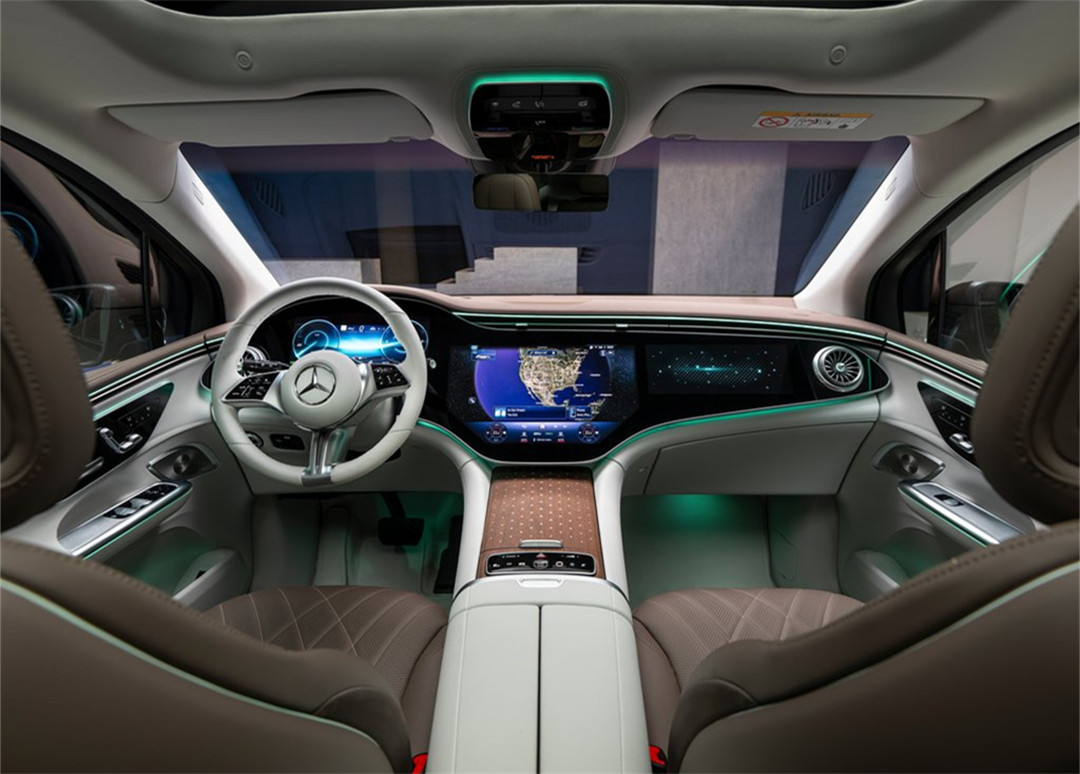 EQE SUV内饰使用了大家熟悉的Hyperscreen超联曲面OLED屏,科技和精致感相结合。