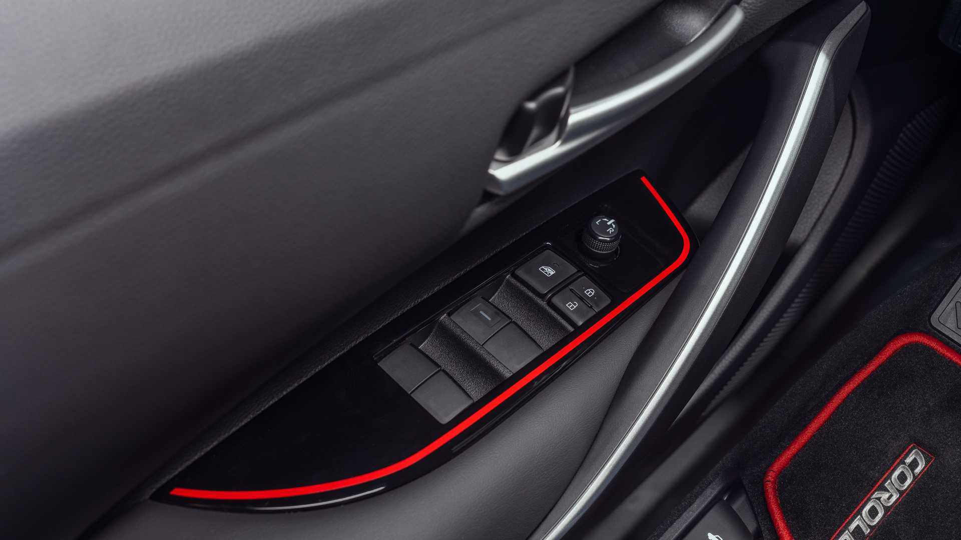 另外,新车在车内门板处、座椅坐垫以及脚垫等细节部分,均采用红色线条辅以点缀,由此可见新车很想把运动气息延伸至车内。