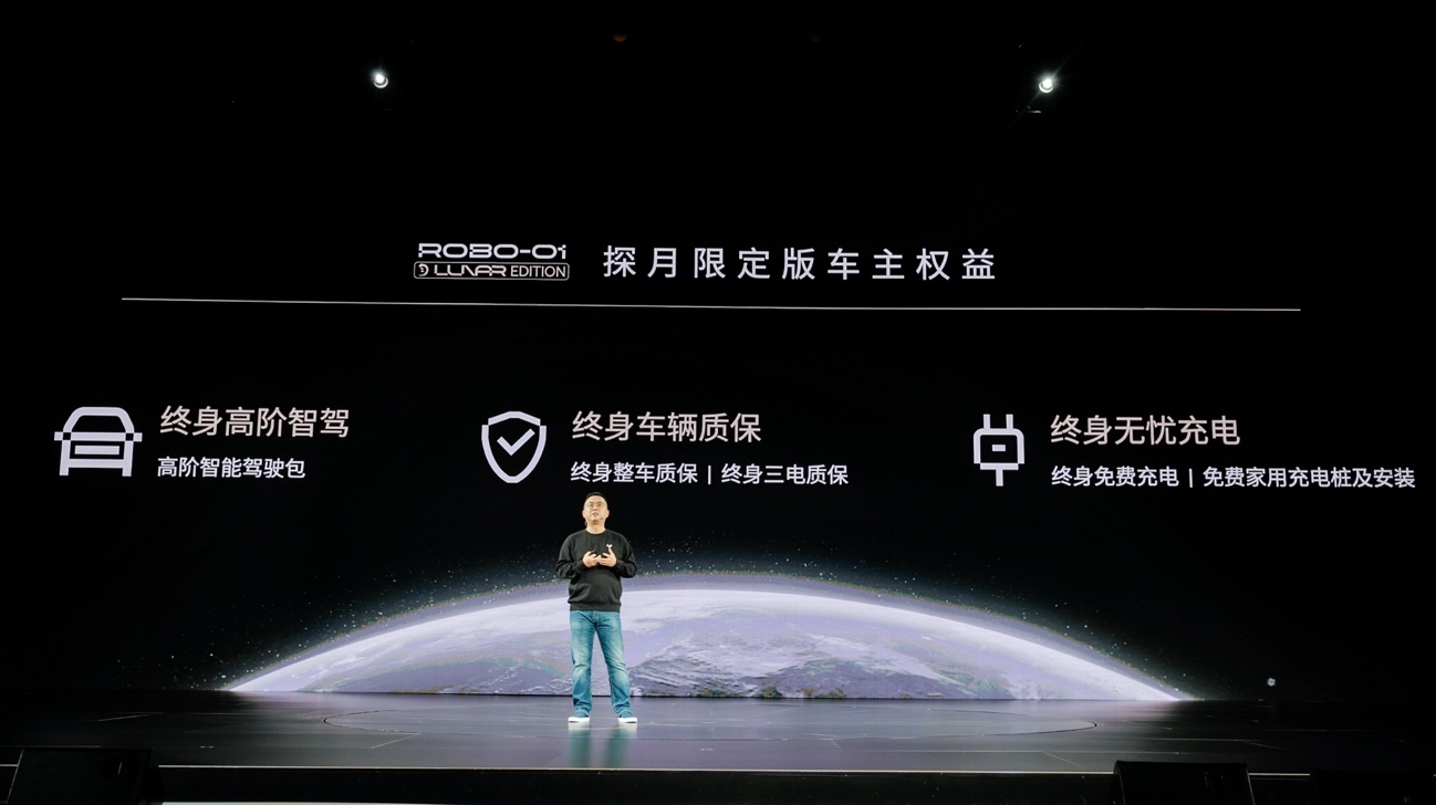 ROBO-01探月限定版售价39.98万元,并拥有丰富的、终身相随的专属权益,是汽车行业少有的满格特权。