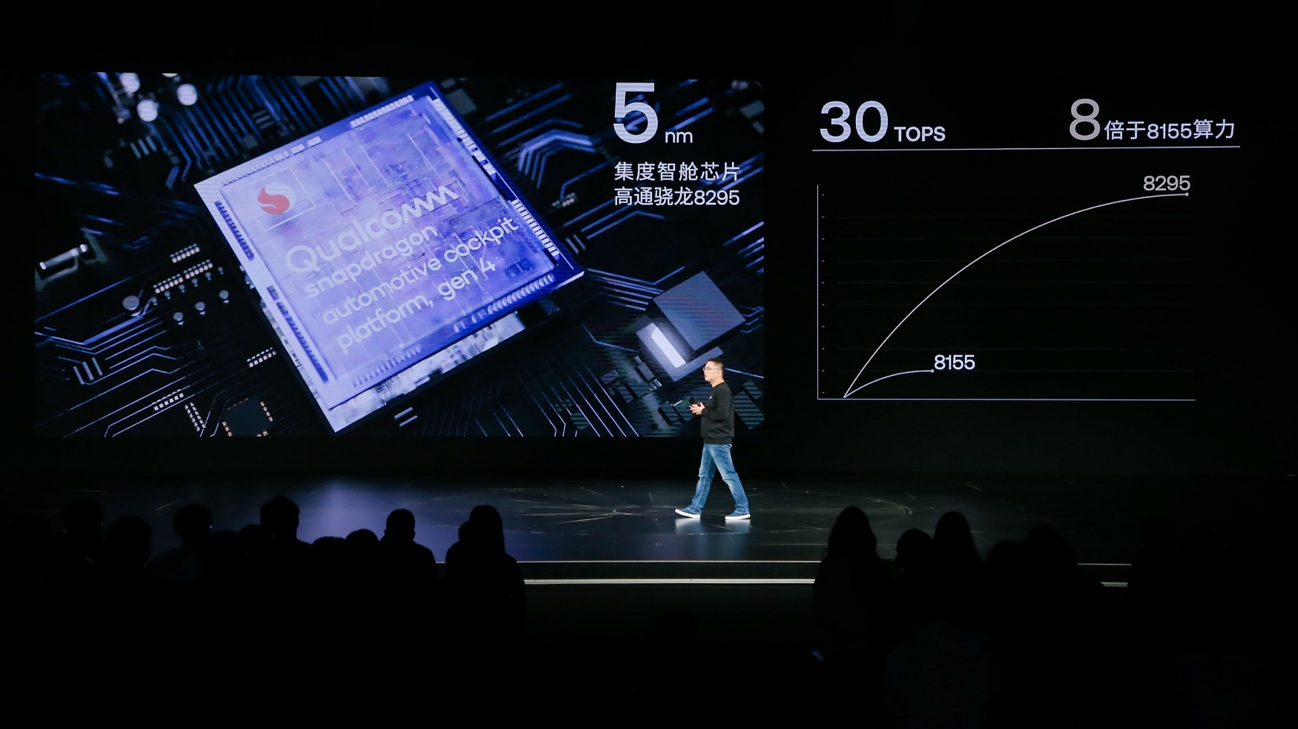 ROBO-01探月限定版将首发搭载高通第四代骁龙数字座舱平台——8295芯片。高通8295是首个量产5nm制程的车规级芯片,AI 算力30TOPS,较上一代产品近8倍性能提升,支持沉浸式3D交互,领跑行业一个代际。