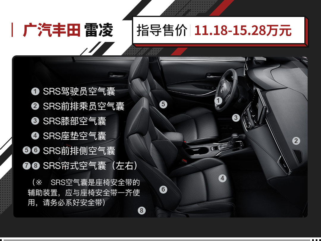 一是安全配置出色。丰田TNGA架构下的新车都十分注重安全表现,比如被动安全,在高强性GLA车身的基础上,雷凌还全系标配8个安全气囊以及TPMS胎压监测,尤其配备了业内少见的座垫内气囊,可以在发生正面碰撞时,将副驾驶乘客的大腿抬起一度角度,防止碰撞瞬间大腿下沉向前造成的伤害。还有主动安全,雷凌搭载功能丰富的丰田TSS智行安全系统,可实现L2级智能驾驶辅助,功能包括DRCC动态雷达巡航、LTA车道追踪辅助、PCS预碰撞预警系统、AHB自动调节远近光系统等,表现值得肯定。