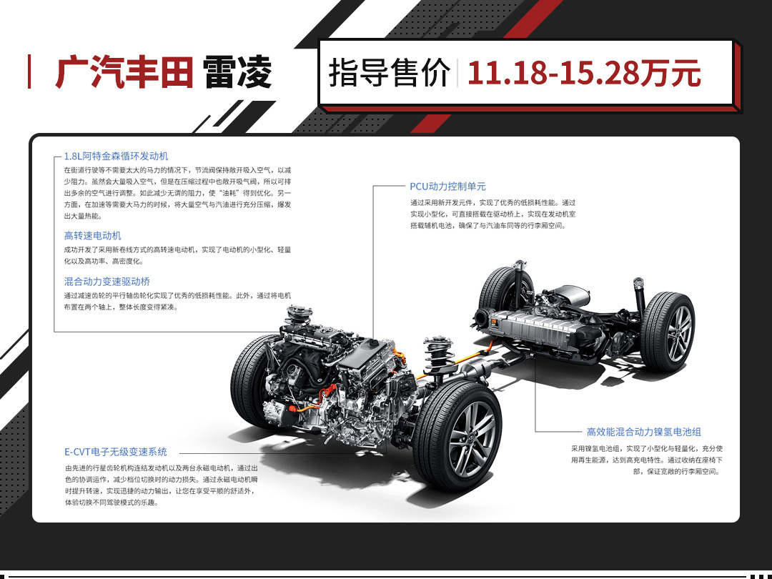 这一代的雷凌是基于丰田THGA架构GA-C平台打造,关于TNGA架构无须多言,其技术实力领跑世界是公认的;另外,我们上面频频提及的THS混动技术,也是丰田在该领域拥有超过20年的技术积累,实力足够雄厚,一度曾是独孤求败的状态,业内有云:世界上有两种混动,一种是丰田混动,一种是其他混动。