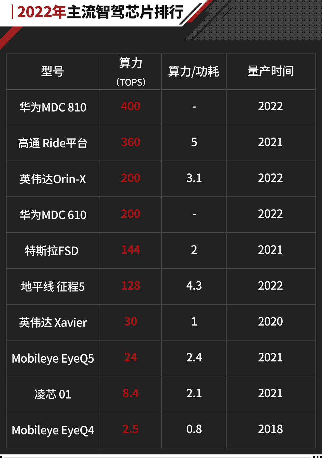 以上都是外国方案的代表,但实际上国内也有不少自研芯片的佼佼者,包括了某些车企、新芯片企业。