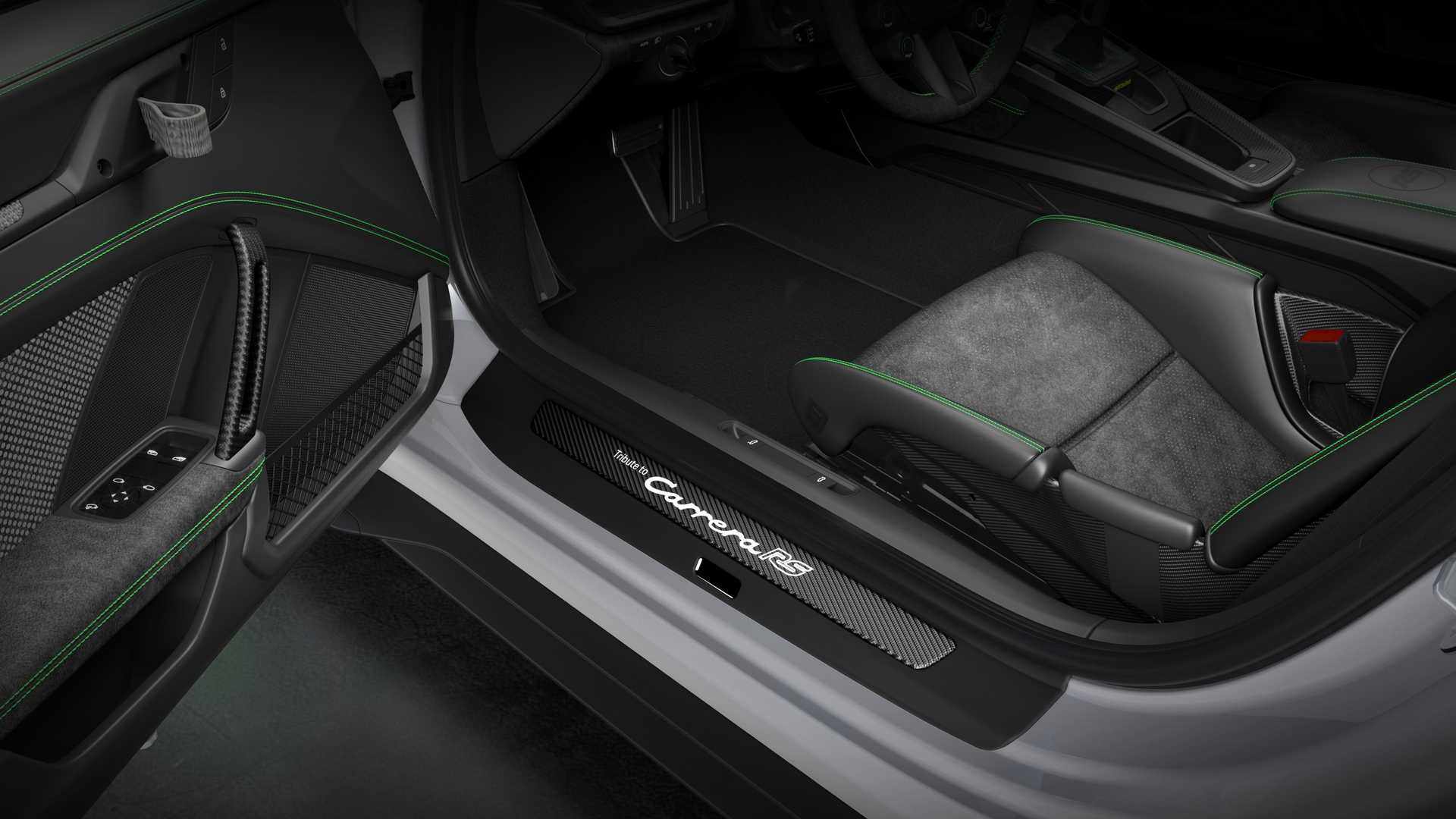 其它方面,新车的车门踏板上有一个向Carrera RS致敬的标志,中央扶手盖上同样印有浮雕的“RS”标识,总之,新车的内饰上可谓细节拉满,且处处充满致敬的味道。