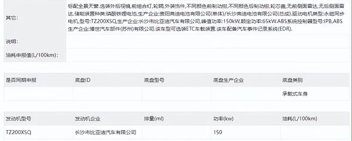 具体动力方面,新款汉EV此次申报的电动机型号为TZ200XSQ,与比亚迪元PLUS所使用的电动机为同一型号,最大功率150千瓦,峰值扭矩或为310牛·米,百公里加速时间预计8秒出头。
