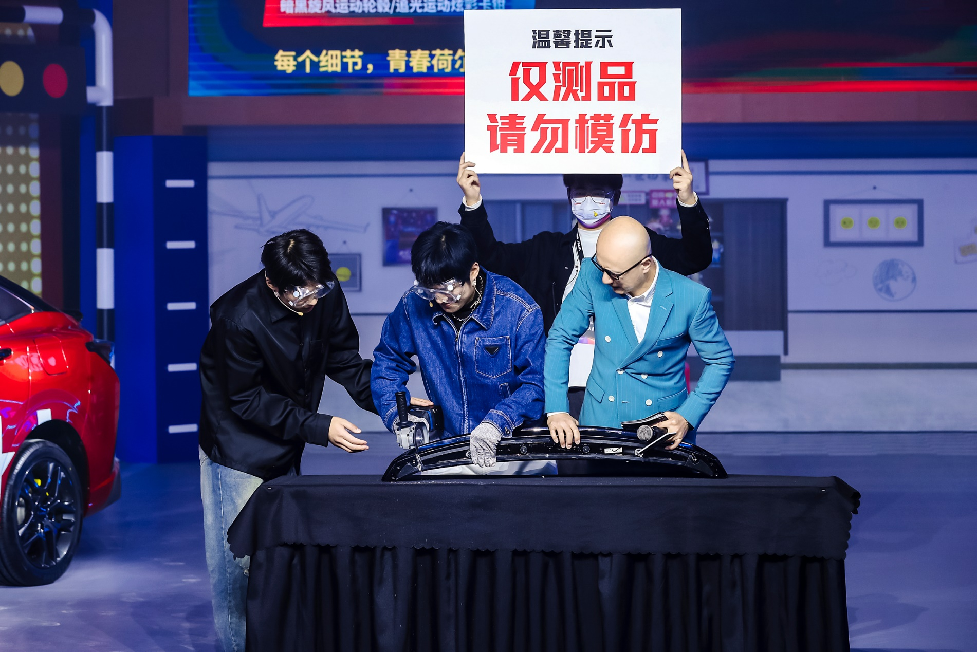 (图:疯狂大小杨哥直播切割全新奕炫马赫版尾翼,展示内部结构)