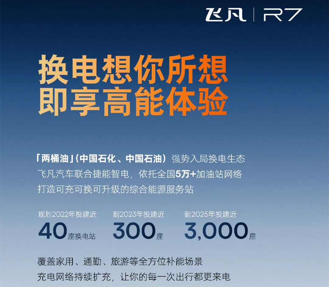 这边蔚来目前已经建成了1011座换电站,其中高速公路有256座,计划2025年达到4000座。而高速路几乎被“两桶油”占领,是飞凡最有优势的地方。