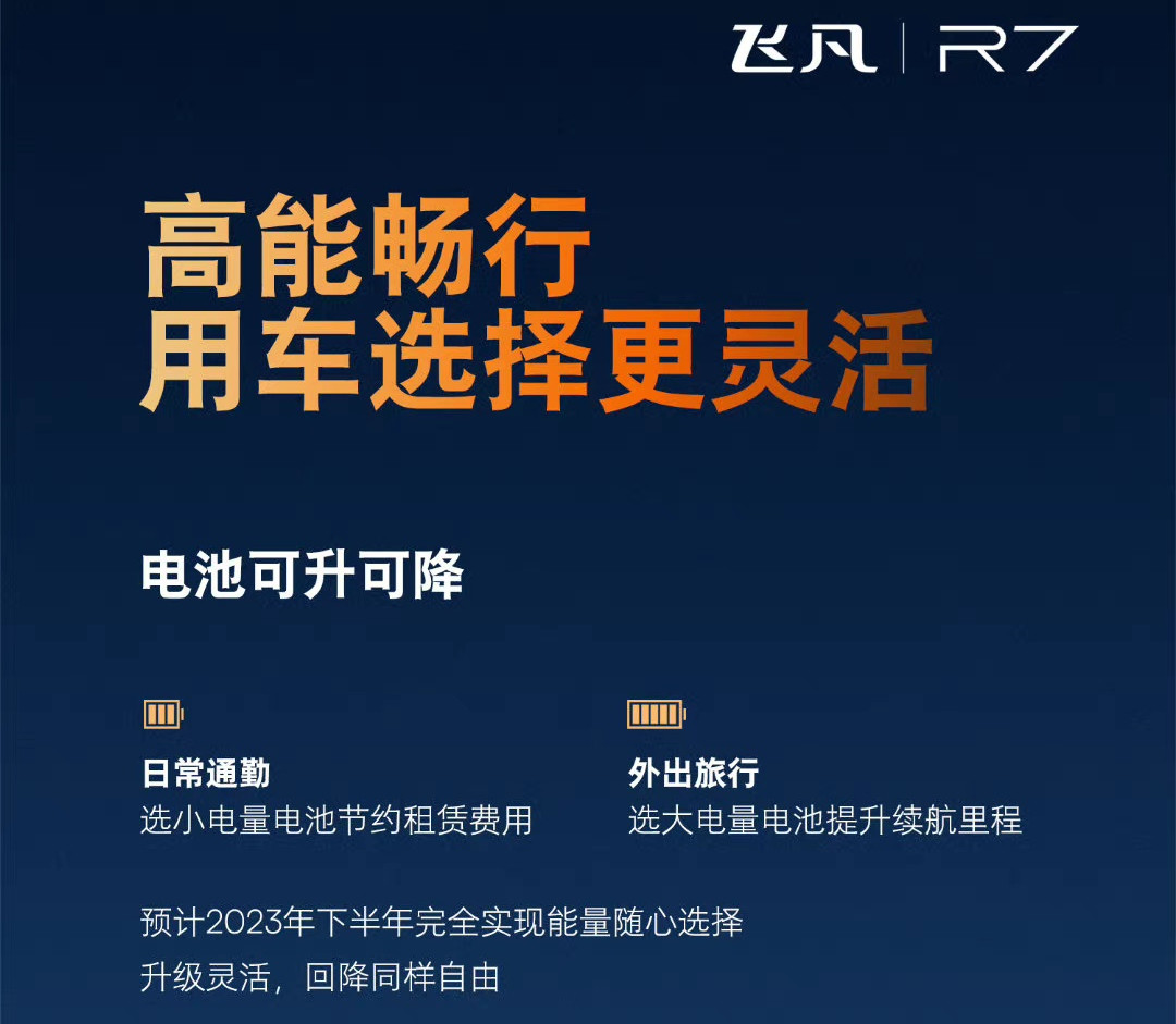 明年6月,飞凡也会推出日租模式,需要跑长途时可以选择更大容量的电池来按天租赁。
