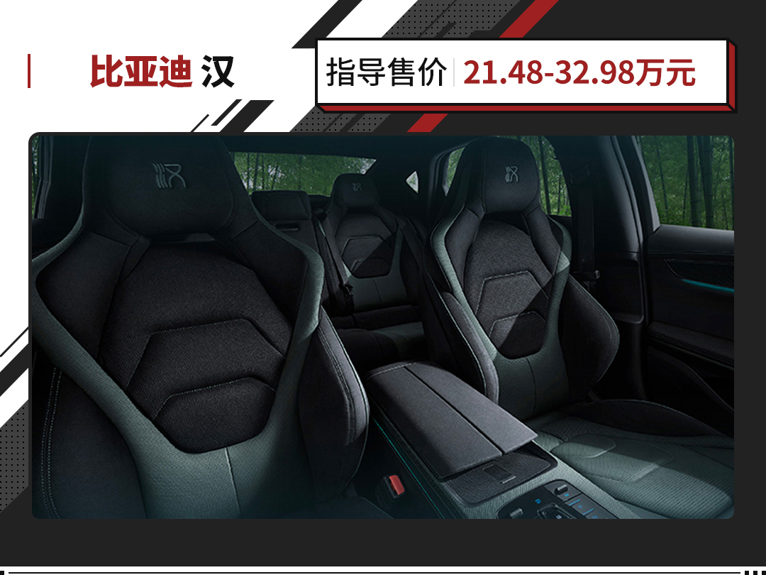 内饰方面,汉EV与汉DM保持一致,采用环抱式品格设计语言,灵感来自中国古建筑“品”字型排布方式;还有汉化的按键以及“龙”元素等,都融入了中国传统元素,这在当前车市应该是独一份的。还有新增Nappa真皮一体式运动座椅,与整车运动风格相呼应,彰显运动与年轻气息。同时,2022款比亚迪汉还支持选装凝夜紫碳纤维内饰。