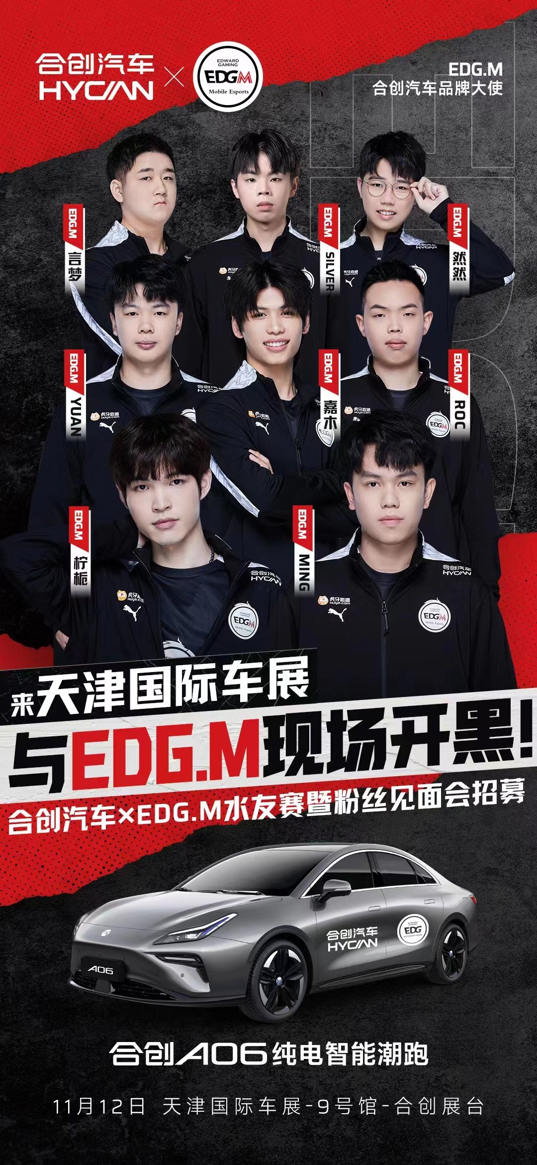 展会期间,EDG.M两位高人气选手将莅临中国天津国际车展合创汽车展台,与现场观众在潮改EDG主题电竞车内进行水友赛暨粉丝见面会活动。