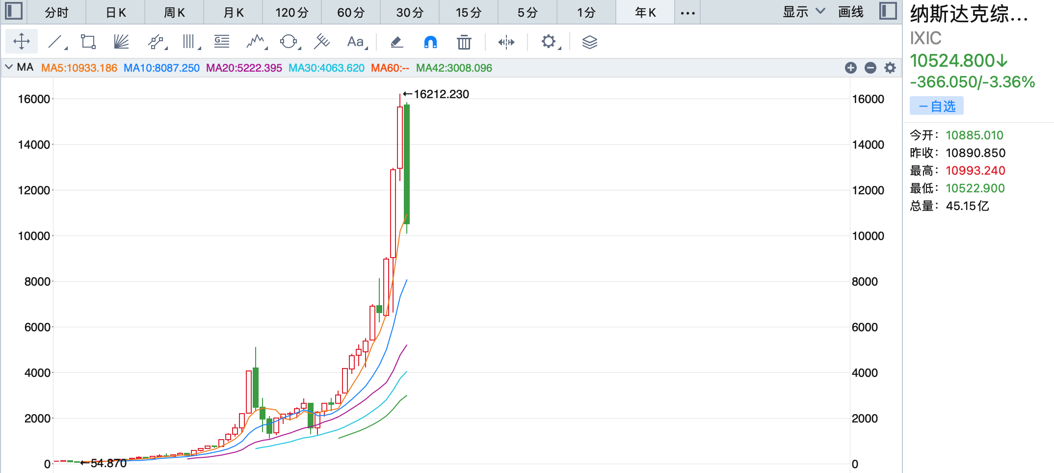 过去纳指出现类似程度跌幅的,还是在2000年网络泡沫破裂的时候。