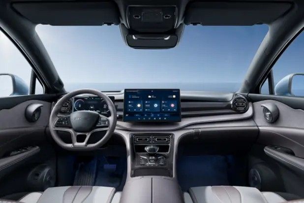 内饰方面,护卫舰07依旧是十分简洁的设计风格,但布局以及设计上能凸显一定的质感和科技化氛围。棕色的麂皮面料内饰配合车内各处的金属质感饰条有着不错的温馨家用氛围。