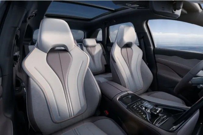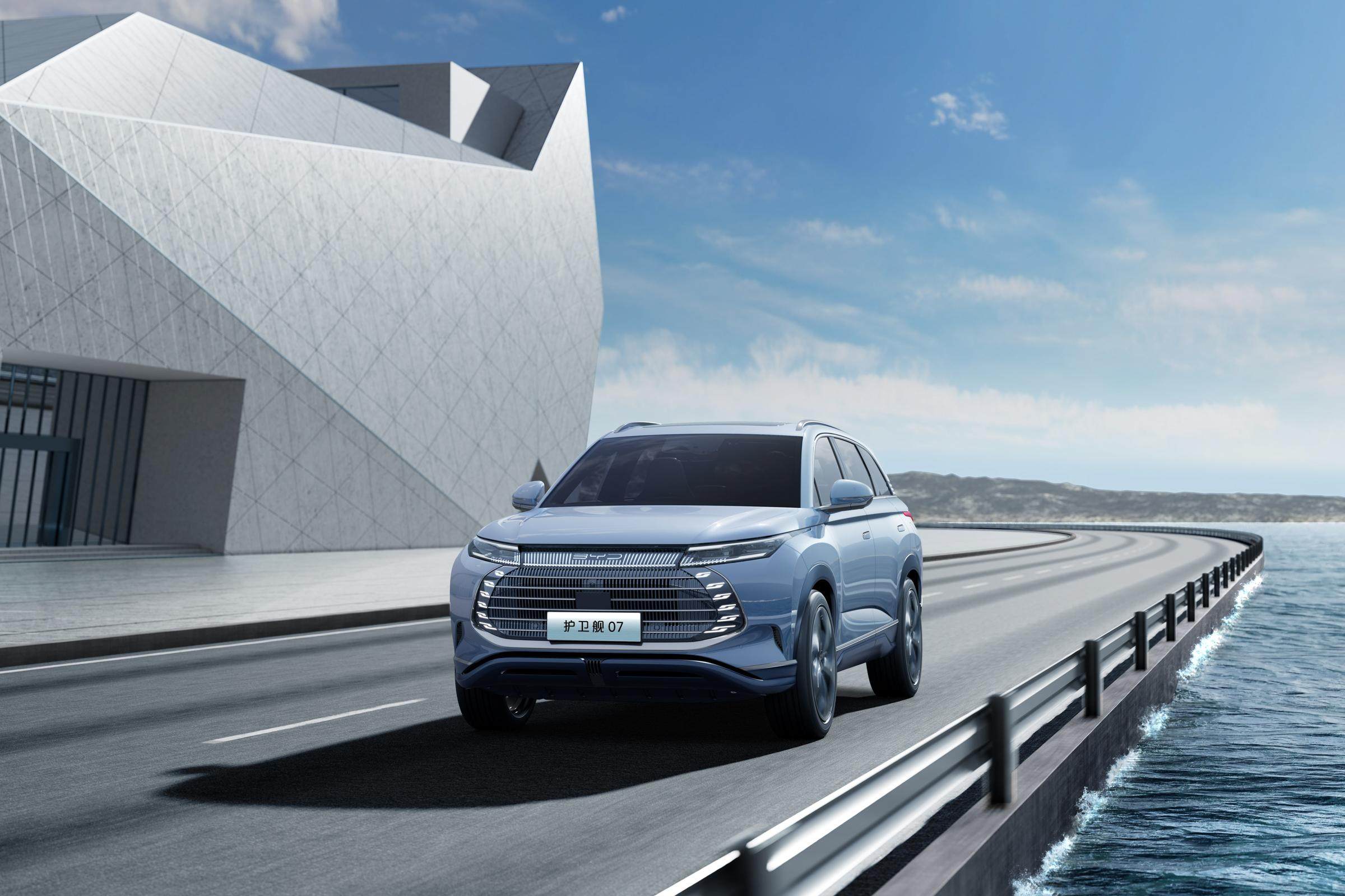 隐藏式门把手、贯穿式尾灯以及高腰线窄车窗的设计也有出现在护卫舰07上,配合大轮圈、行李架和后扰流板,整体车身设计简洁但硬朗,符合时下消费者对于一台SUV的审美。