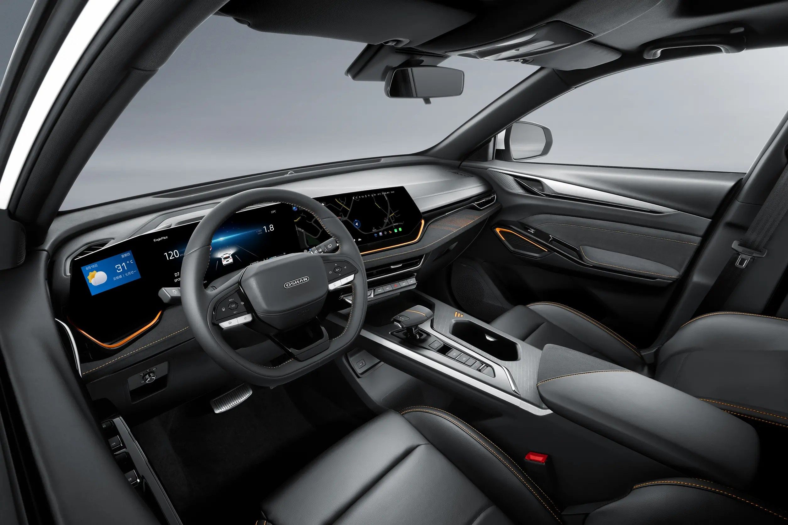 值得一提的是,除了常规的液晶仪表盘和中控显示屏外,欧尚X5 PLUS还增加了驾驶位左侧的“驾驶辅助屏”,可以实现导航无缝显示、左侧A柱盲区辅助显示、道路交通标识辅助显示等功能,驾驶员查看导航与实时路况信息时将会更加迅捷便利。