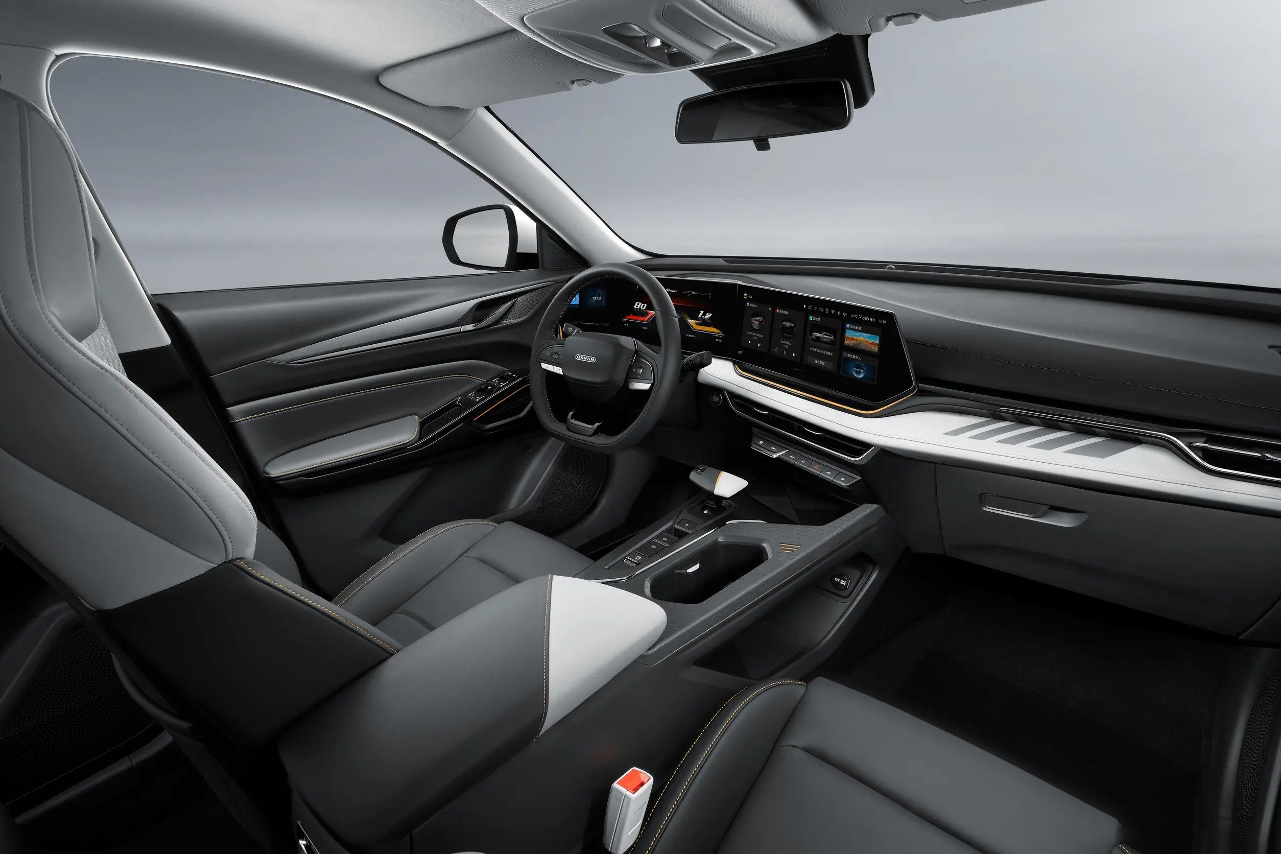 内饰方面,欧尚X5 PLUS采用了全新的设计语言,相较于欧尚X5要更加新颖时尚。30英寸的三联屏设计、全新的电子挡杆、一体式运动座椅等配置带来了不少科技氛围。黑灰双拼的内饰配色也有着不错的质感。