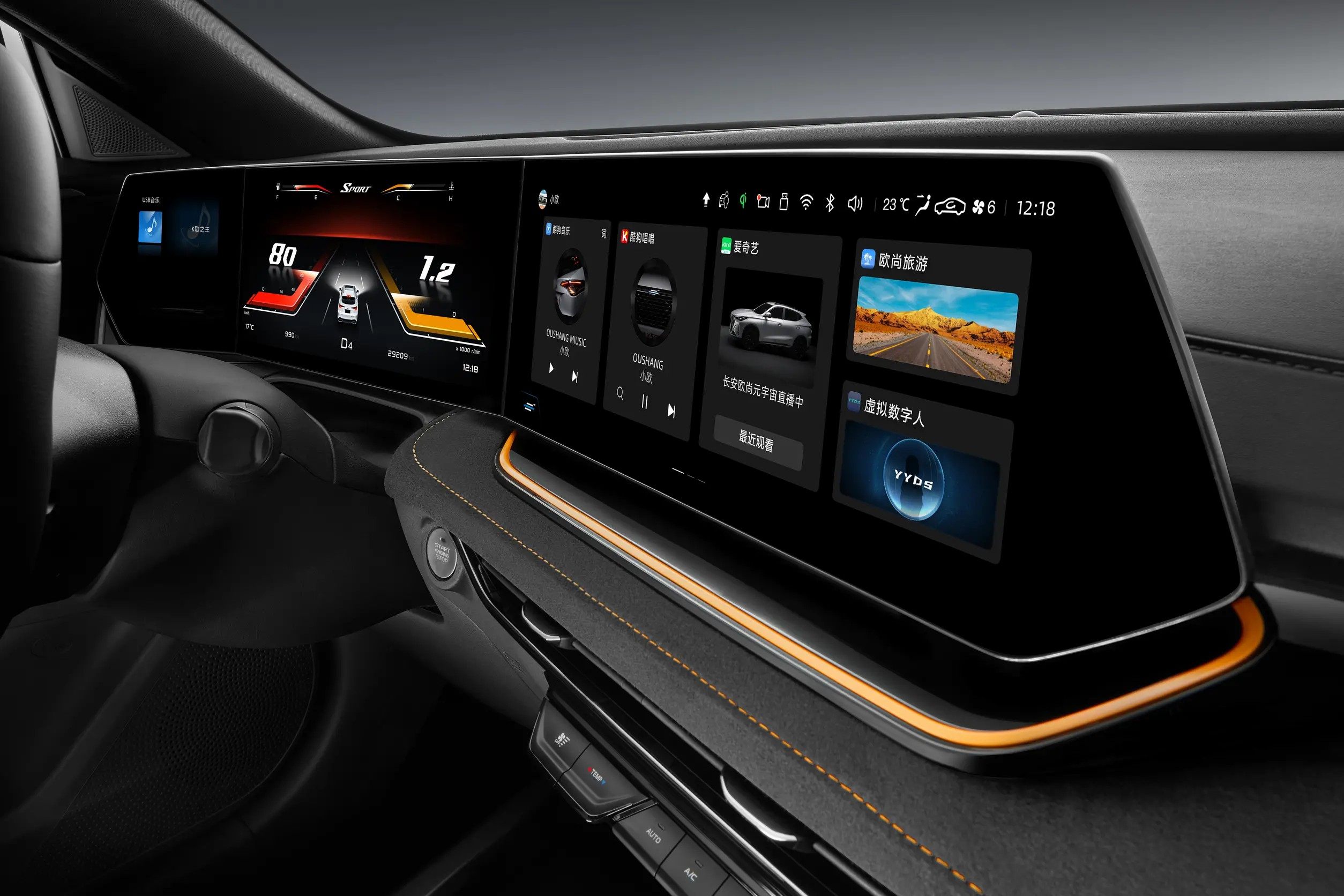 欧尚X5 PLUS的三块屏幕还呈环抱式分布在驾驶员视野正中心,人体工程学设计更加优秀,更加适合驾驶员使用或者查看。
