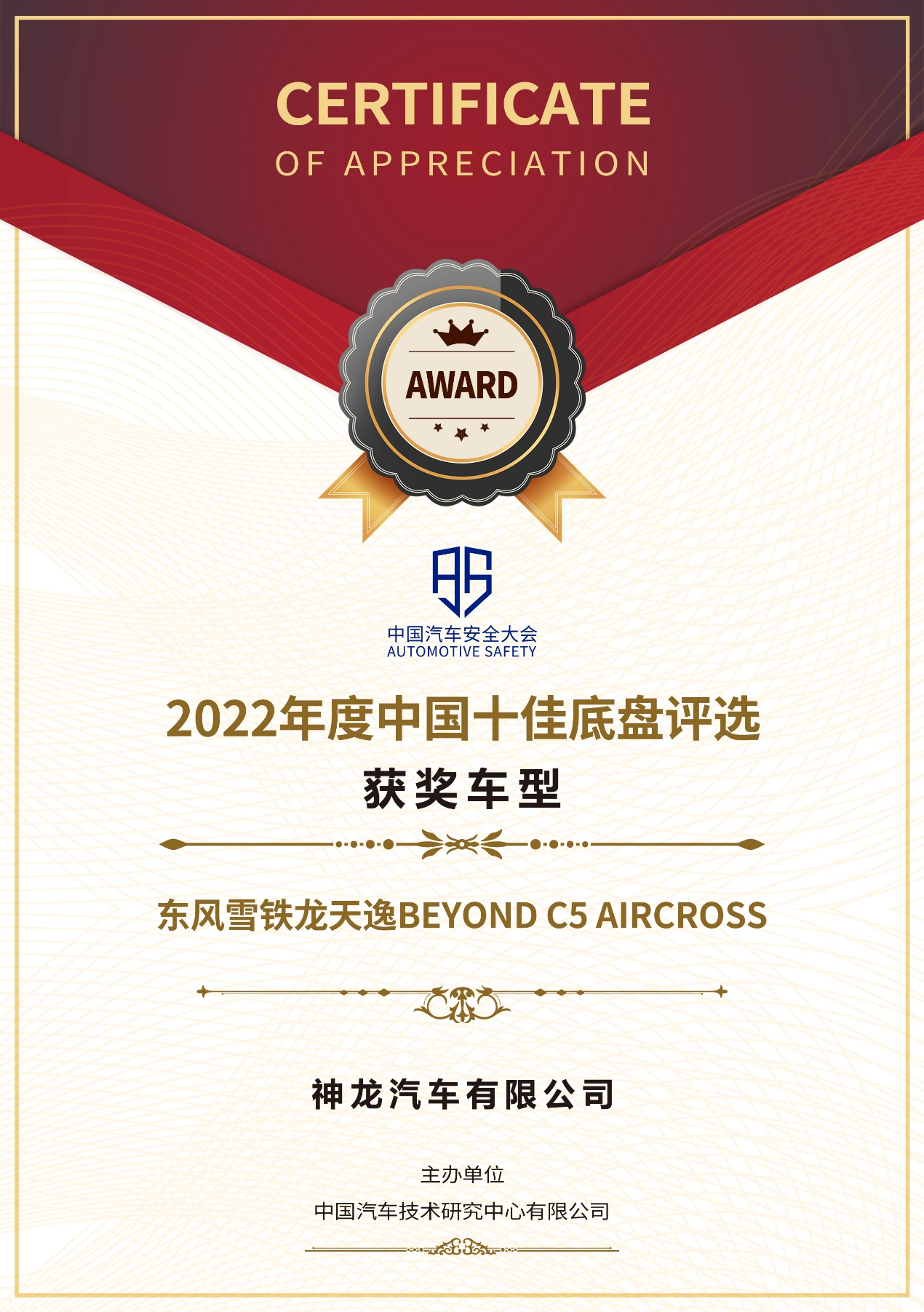 近日,由中国汽车技术研究中心主办的2022年中国汽车安全大会圆满收官。东风雪铁龙天逸BEYOND凭借传承百年的底盘和舒适基因以及全球品质脱颖而出,在操纵稳定性、乘坐舒适性、安全性等底盘性能方面表现尤为亮眼,一举斩获2022年“中国十佳底盘”奖项。2022“中国十佳底盘”奖项从底盘产品的定义、开发、性能和展示四个维度考量,此次颁奖既是对百年底盘大师雪铁龙研发技术的肯定,也是对天逸BEYOND整车实力的认可。