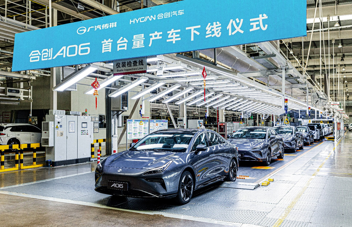 此次合创A06下线的工厂为广乘杭州公司。年初,在股东方珠江投管集团与广汽集团的统筹协调下,合创汽车入股广乘杭州公司,陆续将旗下车型如合创Z03、合创A06移产到杭州。广乘杭州公司是年产能20万辆的世界级智慧工厂,为合创汽车提供充足的产能和卓越的品控保障。车身总拼线采用高密度焊接机器人集成,具备全柔性夹具切换系统;总装车间搭载了国内首创的底盘自动合车工艺,以及先进的电池输送与自动安装系统,一分钟以内可以切换抓手、焊枪,完成切换车型的生产;生管物流采用机器视觉AI技术和独创的VIDM(可视化、信息化、数字化、智能制造)系统,保证生产高效有序进行,实现高精度、多车型柔性共线。