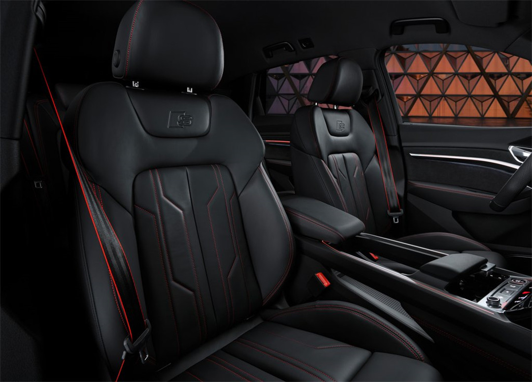 车门和中控台的装饰件可以选择铝、白蜡木、梧桐树木材质,SQ8 e-tron则是碳纤维。地毯、部分塑料件由环保材料制成,运动座椅采用了合成皮和超细纤维Dinamica,均是可回收材质。