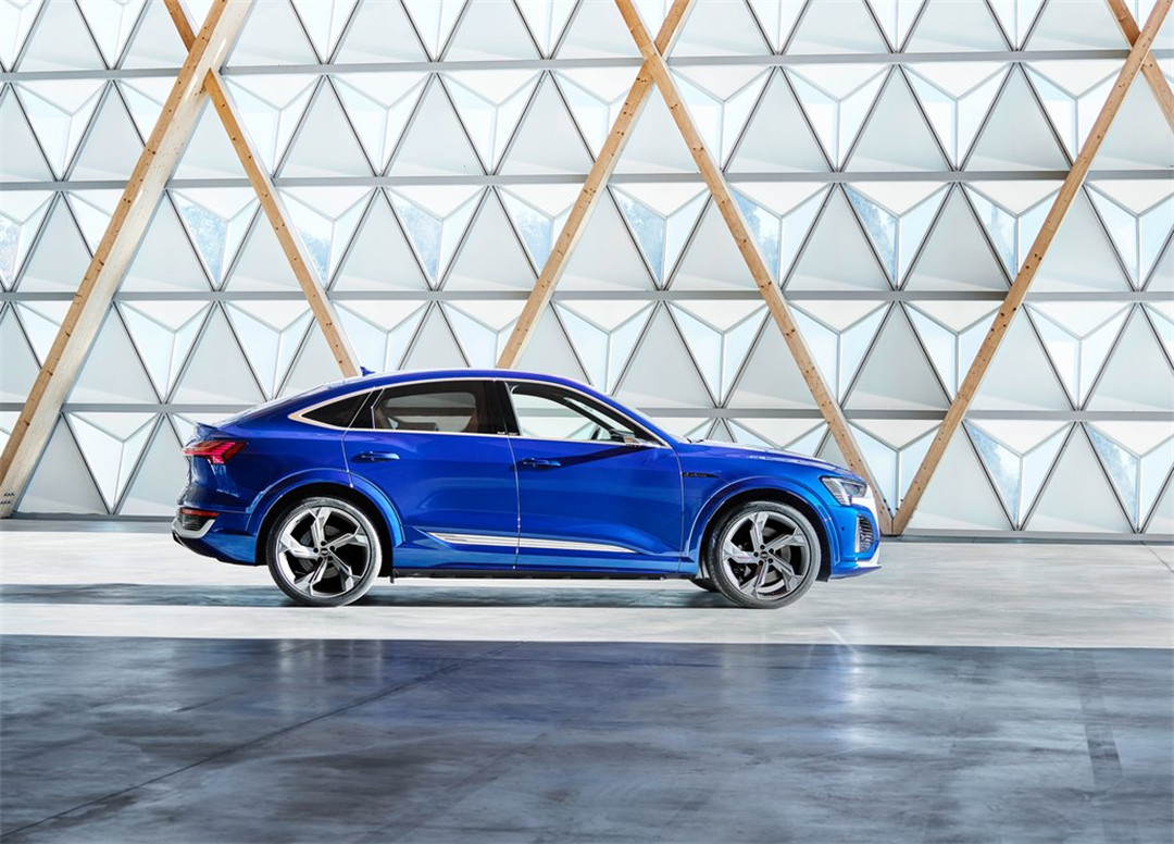 SQ8 e-tron,会匹配三电机系统,前桥一个后桥两个,其最大功率可达503Ps、扭矩973N·m,但同样是104kWh的电池组,所以WLTP续航只有427km,Sportback为513km,0-100km/h加速时间仅4.5秒。