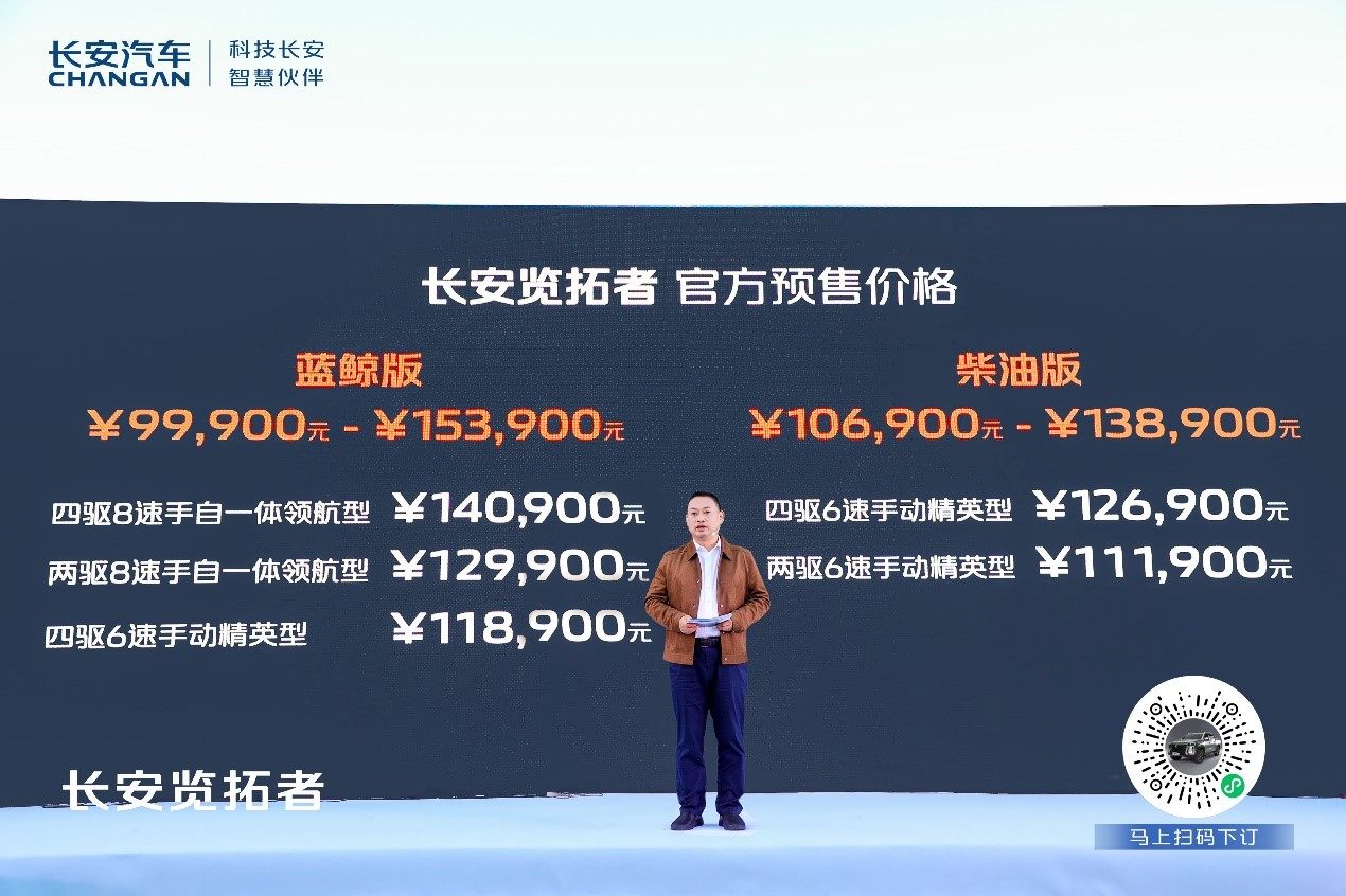 探索焕新,志在突破,探享明日皮卡。11月10日,集长安全球研发优势打造的重量级皮卡——长安览拓者正式开启预售,其中蓝鲸版预售价区间为9.99万元-15.39万元,柴油版预售价区间为10.69万元-13.89万元。
