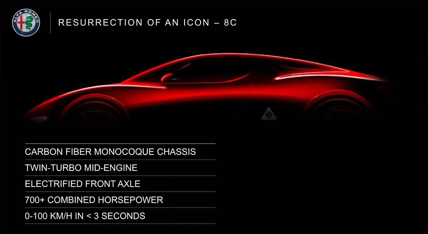 Alfa Romeo 总裁 Jean-Philippe Imparato 在受访时还透露出,保证这辆超跑将是标志性的存在,造型设计非常性感且一眼就能出它是一辆 Alfa Romeo,这也就表明了其设计将会有着十分浓厚的阿尔法·罗密欧的家族式设计。