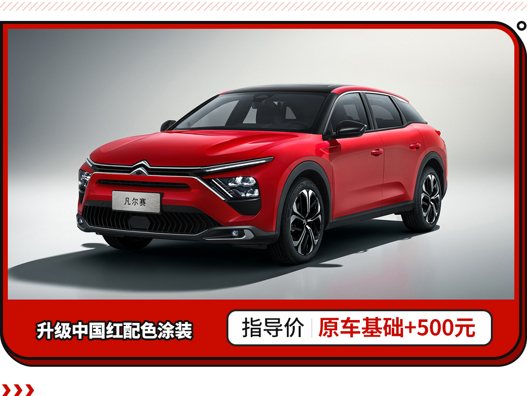 中国红,从文字上可以了解到新车主要围绕红色元素为主题,新车整体造型与凡尔赛 C5 X的造型保持基本一致。因此,它作为特别版本车型,在部分细节稍作处理以彰显出自身独特的身份。