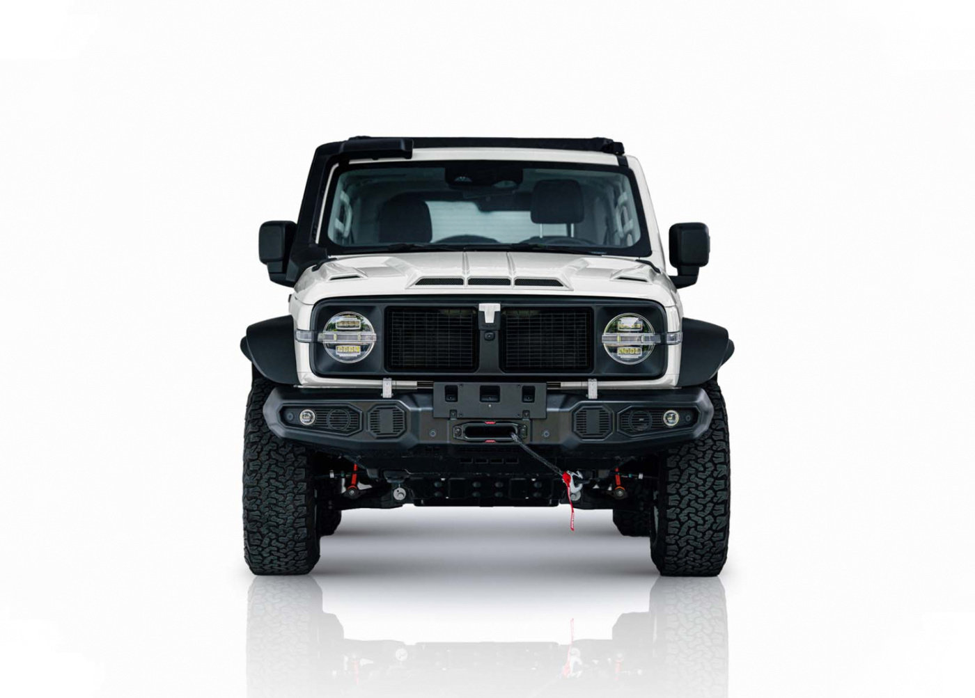 外观方面,新车是基于普通版车型的底子所打造,但相较于普通版车型,新车的前包围带有强度更高的护杠,并配有WARN前绞盘是户外遇险脱困的最大保障,尽显硬派形象。