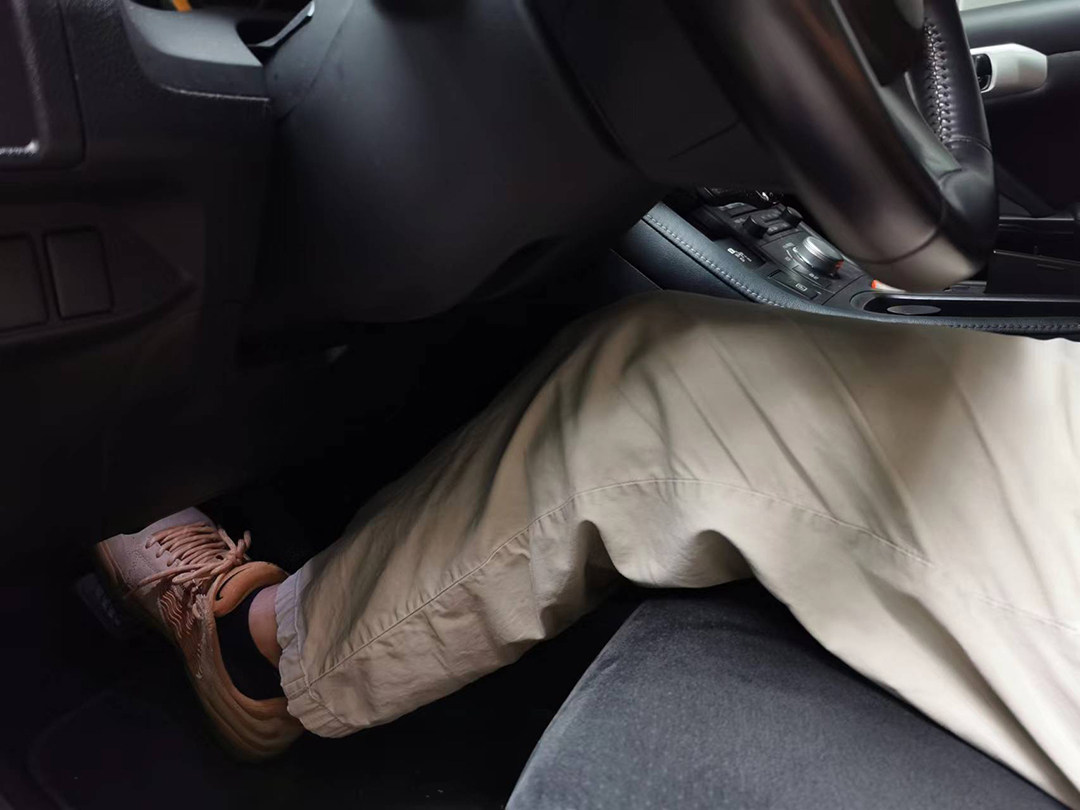 因为在坐姿调整正确的情况下,即便将刹车踏板完全踩到底,驾驶者的腿部都应该保持一定的生理弯曲,而且右脚脚跟一定要离开地板,这能够确保驾驶者的所有力气都作用在刹车踏板上。