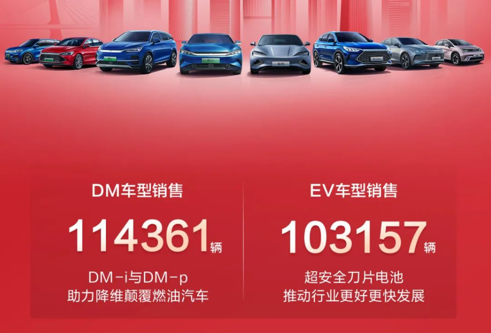 在比亚迪10月份销售的217816辆新能源汽车当中(含9529辆出口车型),DM插电式混动车型销量达到了114361辆,EV纯电动车型销量达到了103157辆。它是目前为数不多能够做到纯电、插混两手抓,并且两手都抓得稳的新能源车企。
