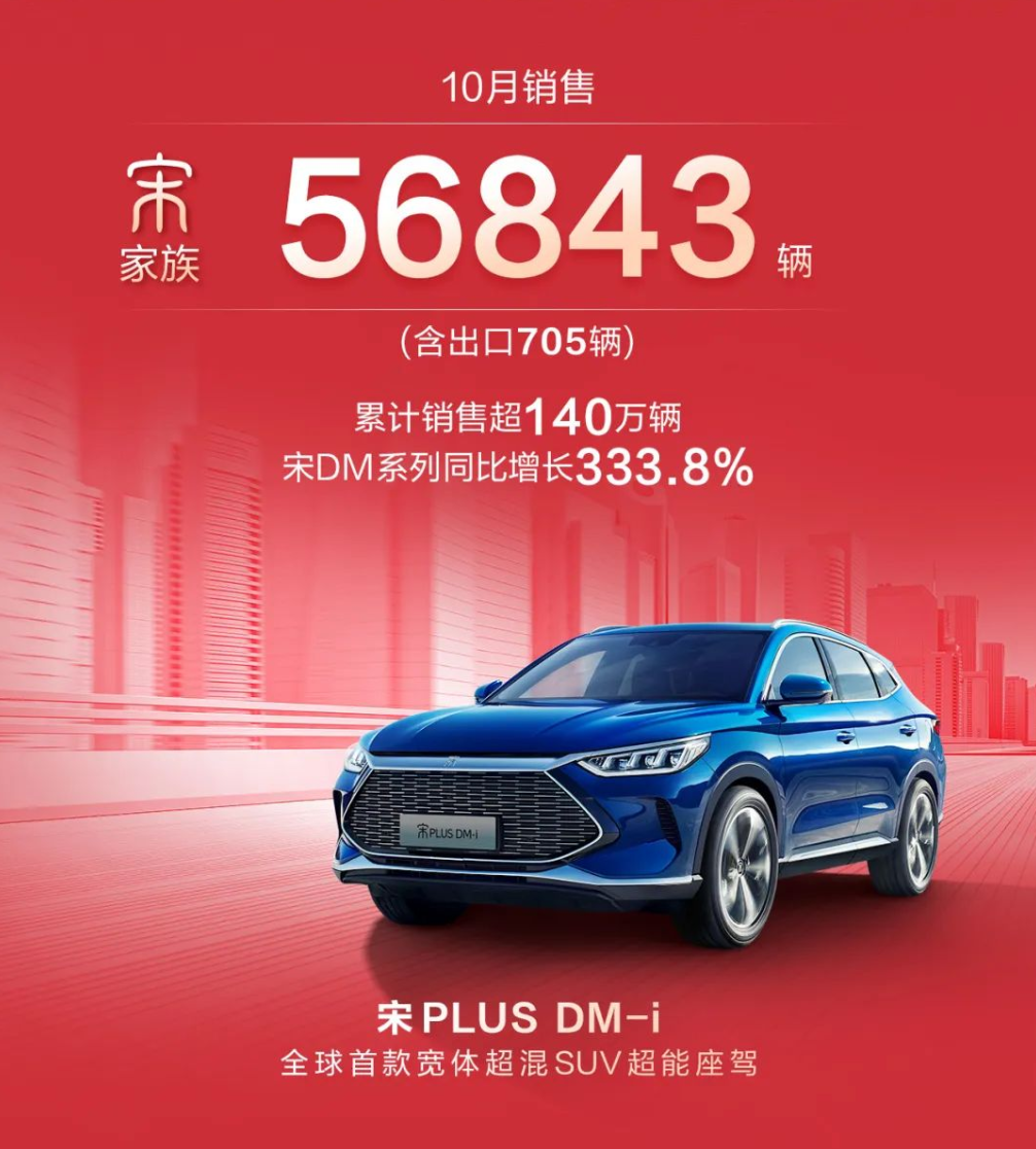 比亚迪的车型销量分布也非常均匀,并没有出现“偏科”的现象。其中,宋家族和秦家族作为比亚迪当之无愧的销量支柱,它们分别在10月份取得了56843辆和34679辆的销量成绩。