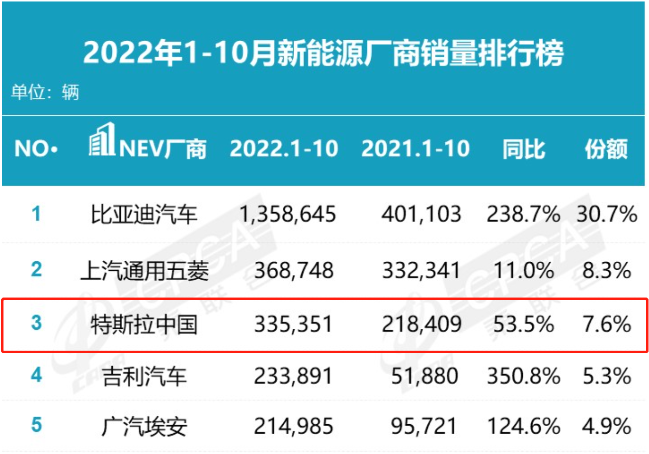 从数据上来看,尽管特斯拉上海超级工厂需要兼顾欧洲市场的交付工作,但它今年1-10月份在中国市场的累计销量依然达到了335351。相较于相较于去年同期,它在今年前10个月的销量增长了53.5%,市场占有率达到了7.6%。
