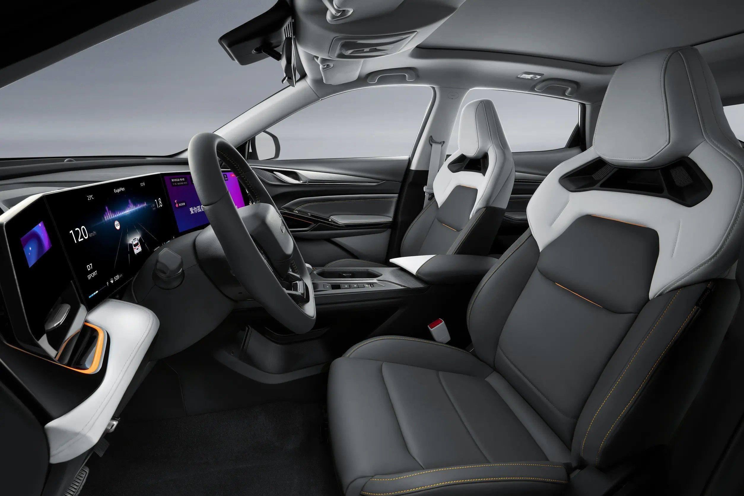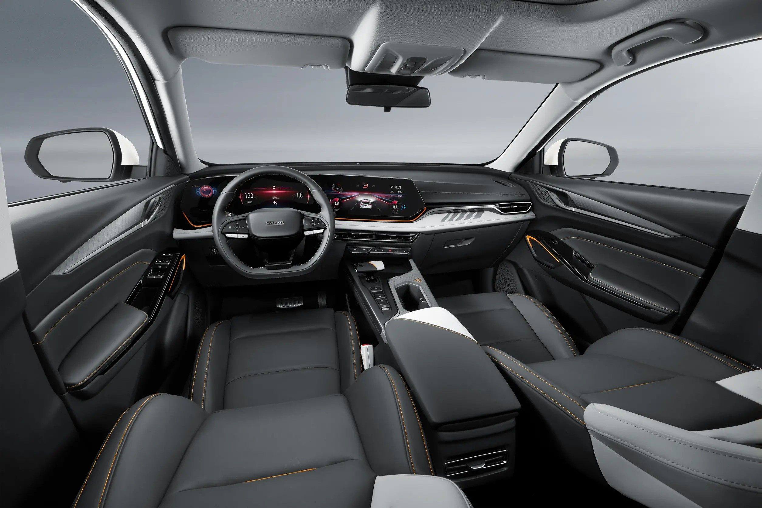 把目光转至于车内部分,就可以发现这套内饰布局足够简洁年轻化,让人很容易联想到新势力电动车。在整个座舱内,最有看点的莫过于30英寸三联屏,这三块屏幕镶嵌在驾驶员视野中央,看起来带来不少科技感的同时,更方便驾驶员获取车辆信息。