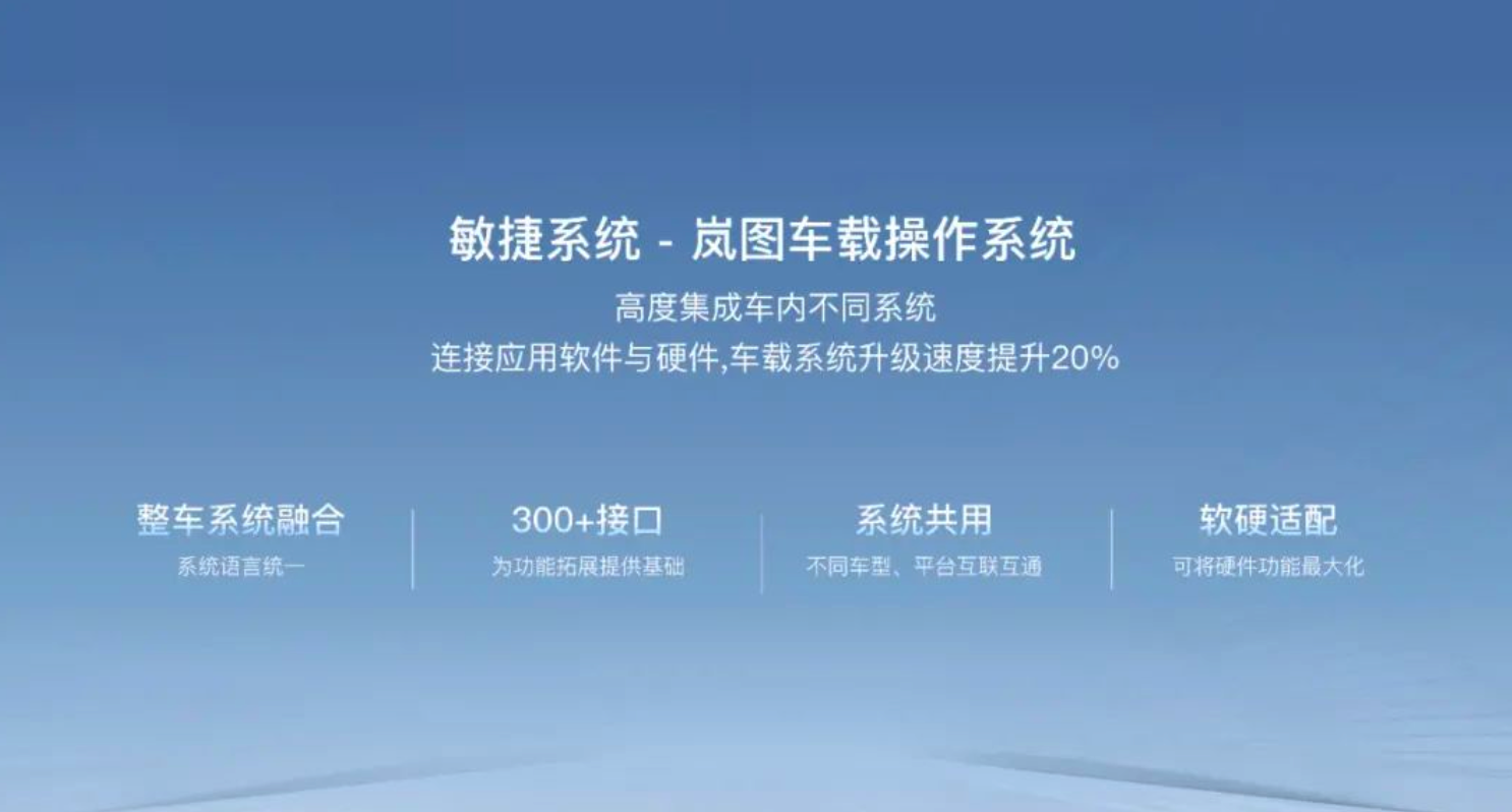 为了达到这一水平,岚图一方面给车载操作系统开放了300+接口,未来还将达到600+,为车辆软硬件扩展提供基础。
