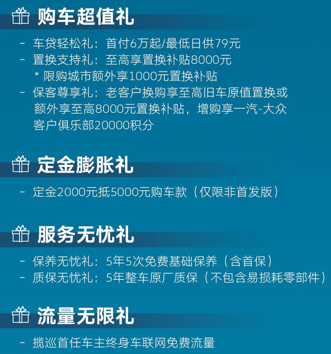 首发版为千台限时发售,可以0元享受价值1万元的专享包,另有多重购车礼遇如下: