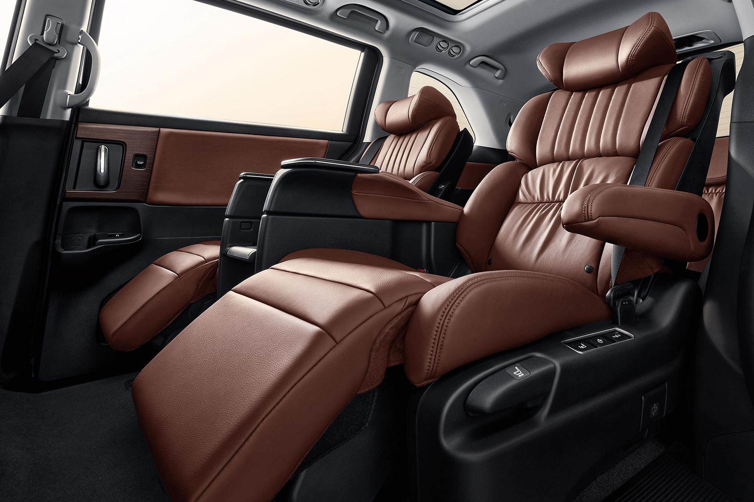 作为四座版的商务向车型,后排座椅的配置自然是重中之重。奥德赛锐·御享四座版后排仅布置双独立式座椅,这排航空座椅将宽度最大化,空间表现十分出色。座椅中具备加热/通风/按摩和多向电动调节/电动腿托等功能,手机无线充电功能也有配备。