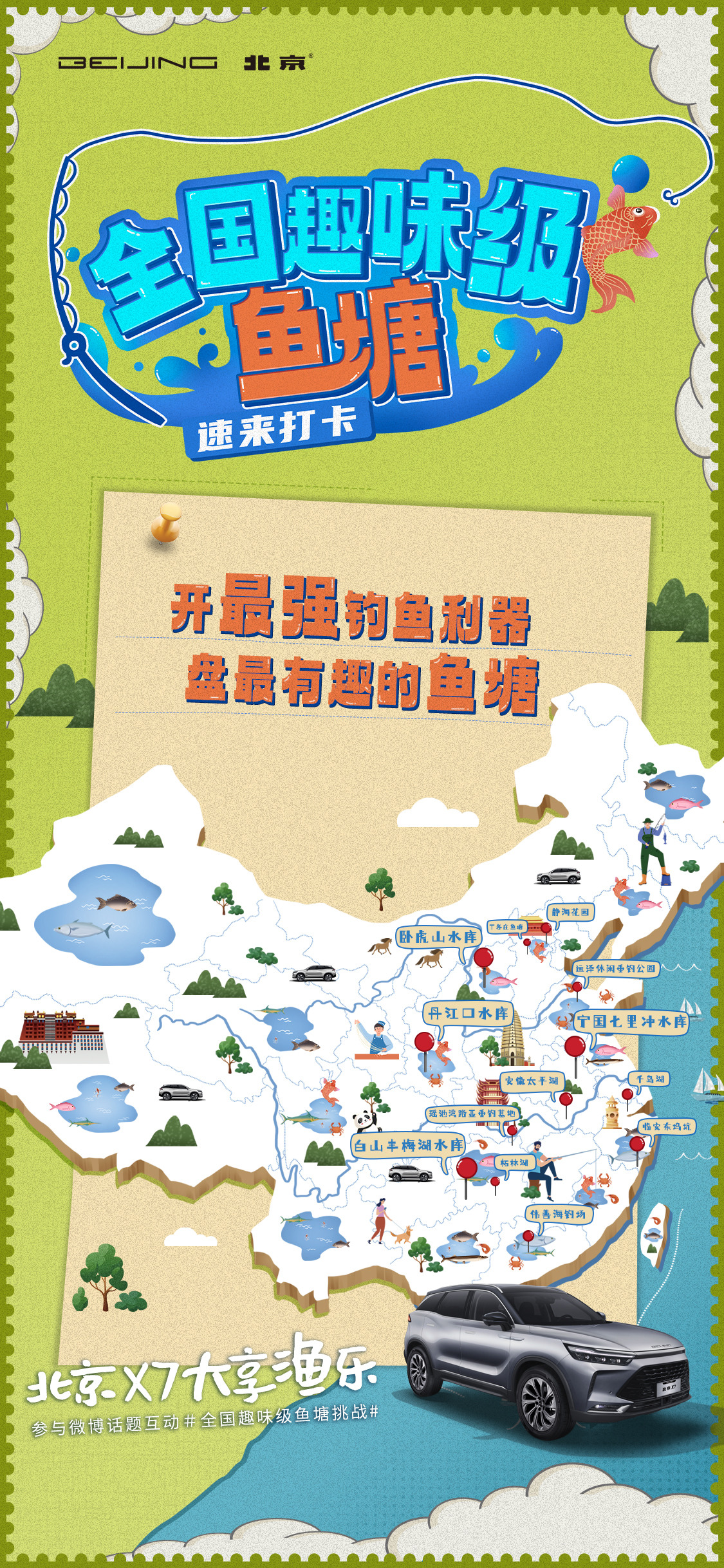 值得一提的是,一场最有意思的“盘塘之旅”即将开启,北京汽车也在官方微博发布了“北京X7大享渔乐”的话题,期待着广大钓友的加入,共同分享北京X7带来的“家享渔乐生活”。