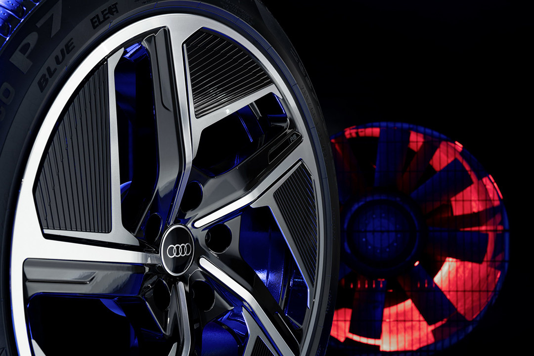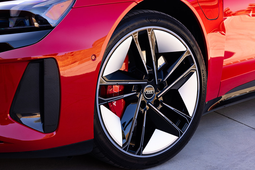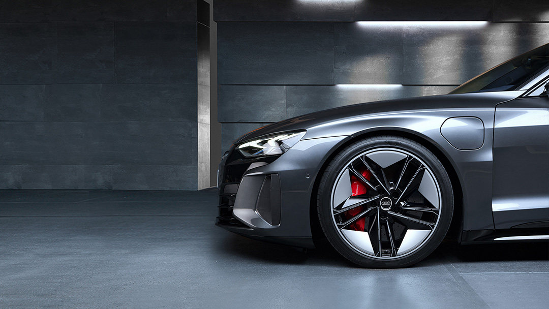 而奥迪RS e-tron GT配备的带有碳化钨涂层的碳陶瓷刹车盘配合前十后四活塞的超强卡钳,让这台轿跑能在每一个弯道之前都能得到高效且稳定的制动性能。