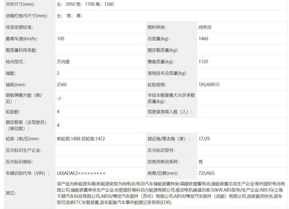 磷酸铁锂电池组则由国轩高科所提供,这也说明五菱对这个品牌十分认可。电池容量并没有透露,不过根据知情人士所透露,大概率会与五菱晴空保持一致,后者续航里程可达300km。