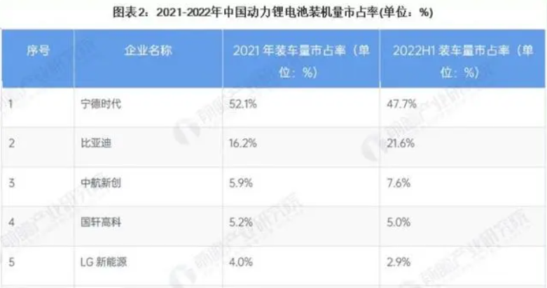以全球头号动力电池供应商宁德时代为例,宁德时代动力电池装机量市占率超过了50%。2022年第一季度,随着动力电池竞争加剧,宁德时代动力电池的市占率却下降到了47.7%。